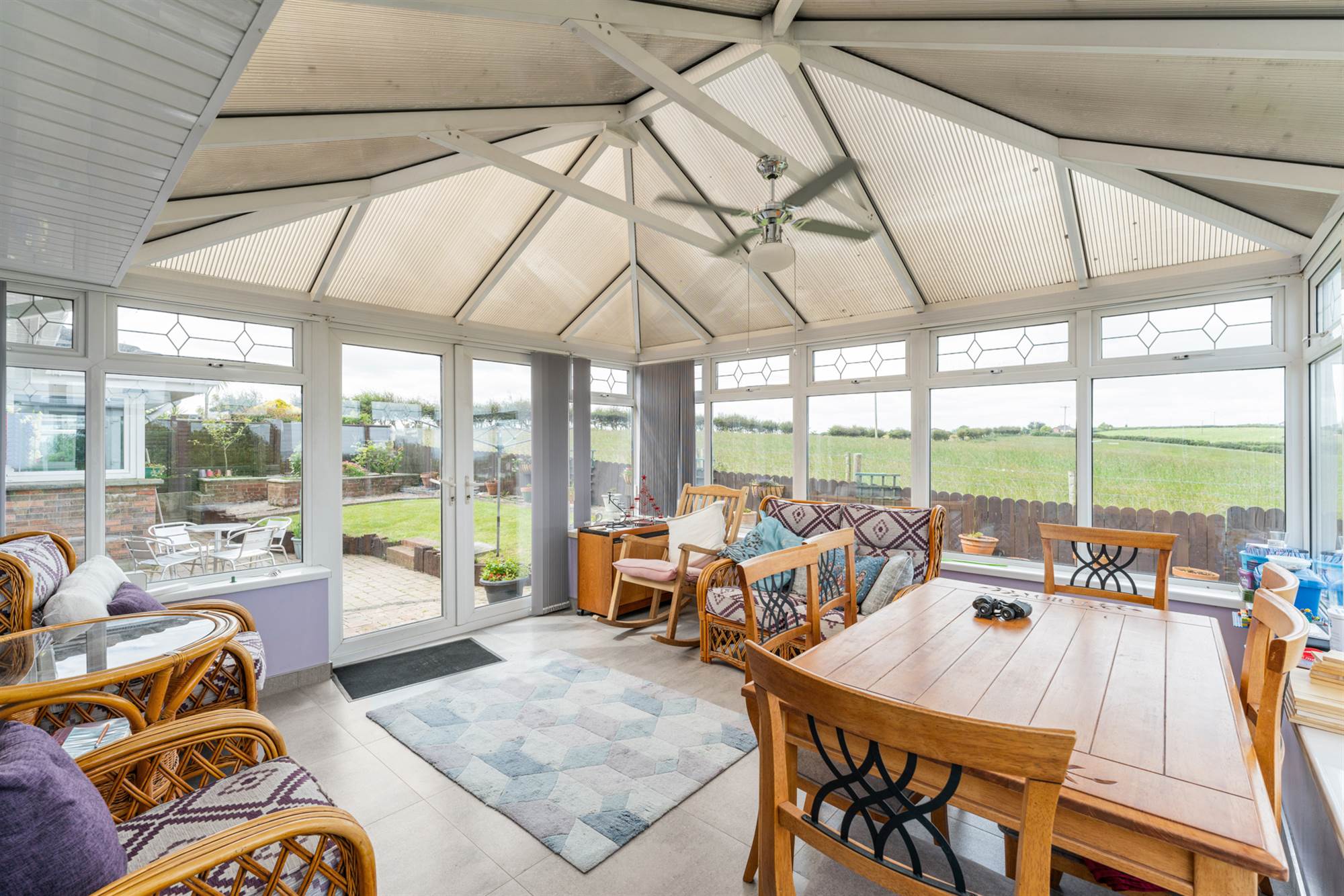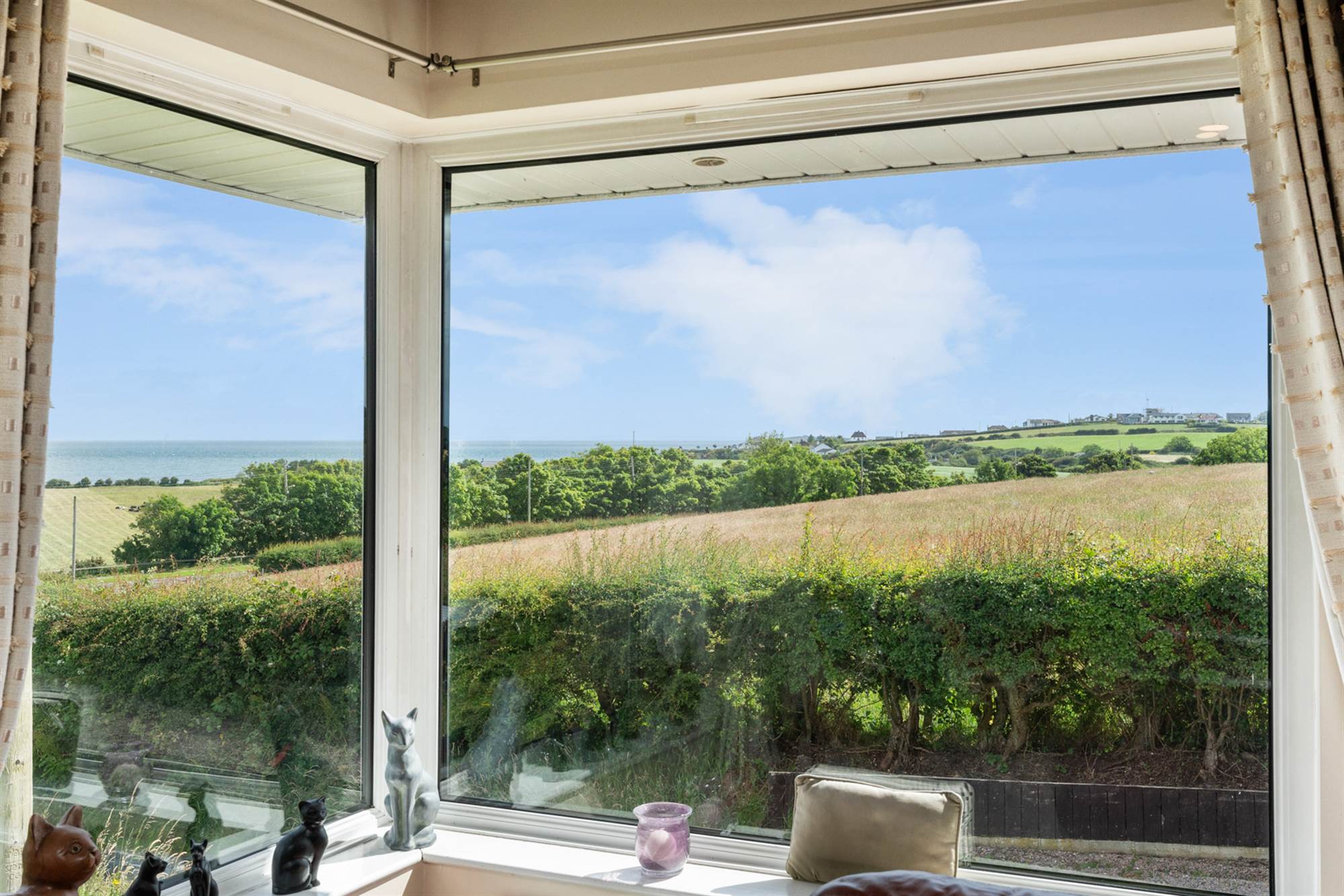 Sun room with countryside and sea views
