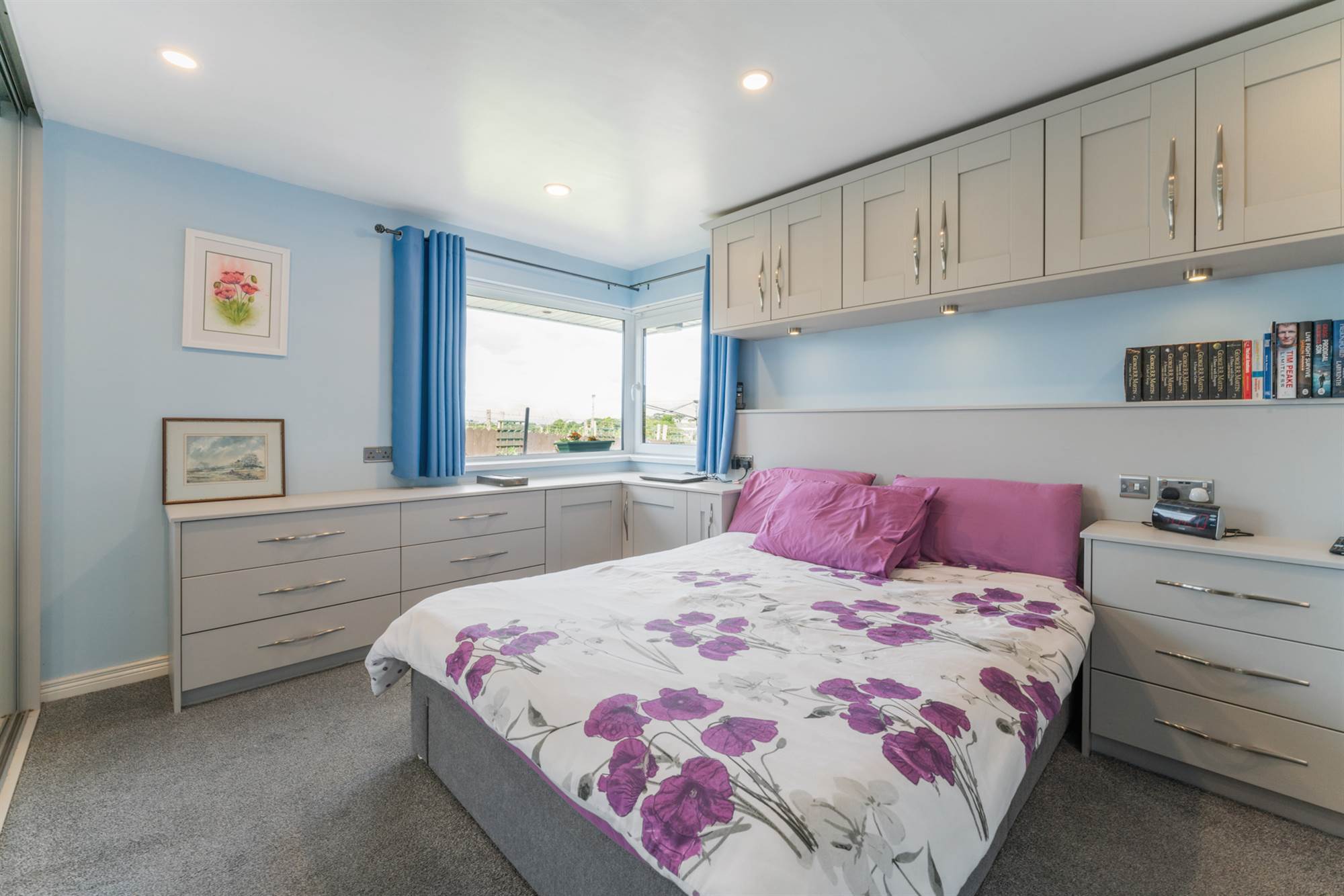 Built in storage and fitted wardrobes, countryside and sea views.