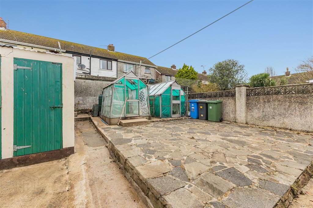 Externally, the property enjoys a well-proportioned front garden with a private parking space for one car. At the rear, large patio area houses two greenhouses, a utility/storage area and a shed/workshop - ideal for gardening enthusiasts or additional storage needs.