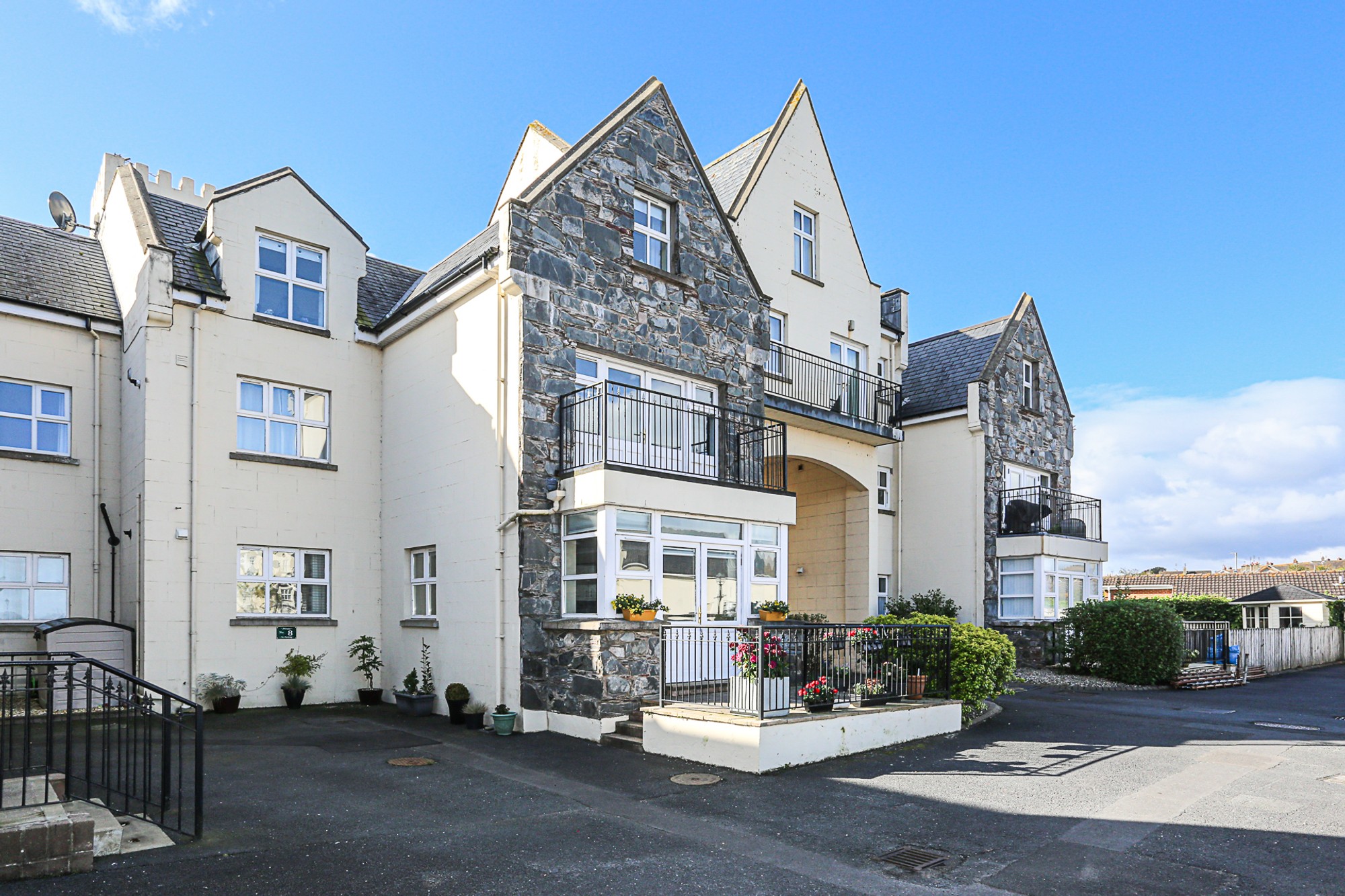 Beautifully presented furnished ground floor apartment located in the grounds of what once was the Groomsport House Hotel. This apartment benefits from bright, spacious, comfortable accommodation comprising of open plan kitchen / Lounge with double doors leading to a sun terrace with views towards the sea, two double bedrooms master en suite and separate shower room.