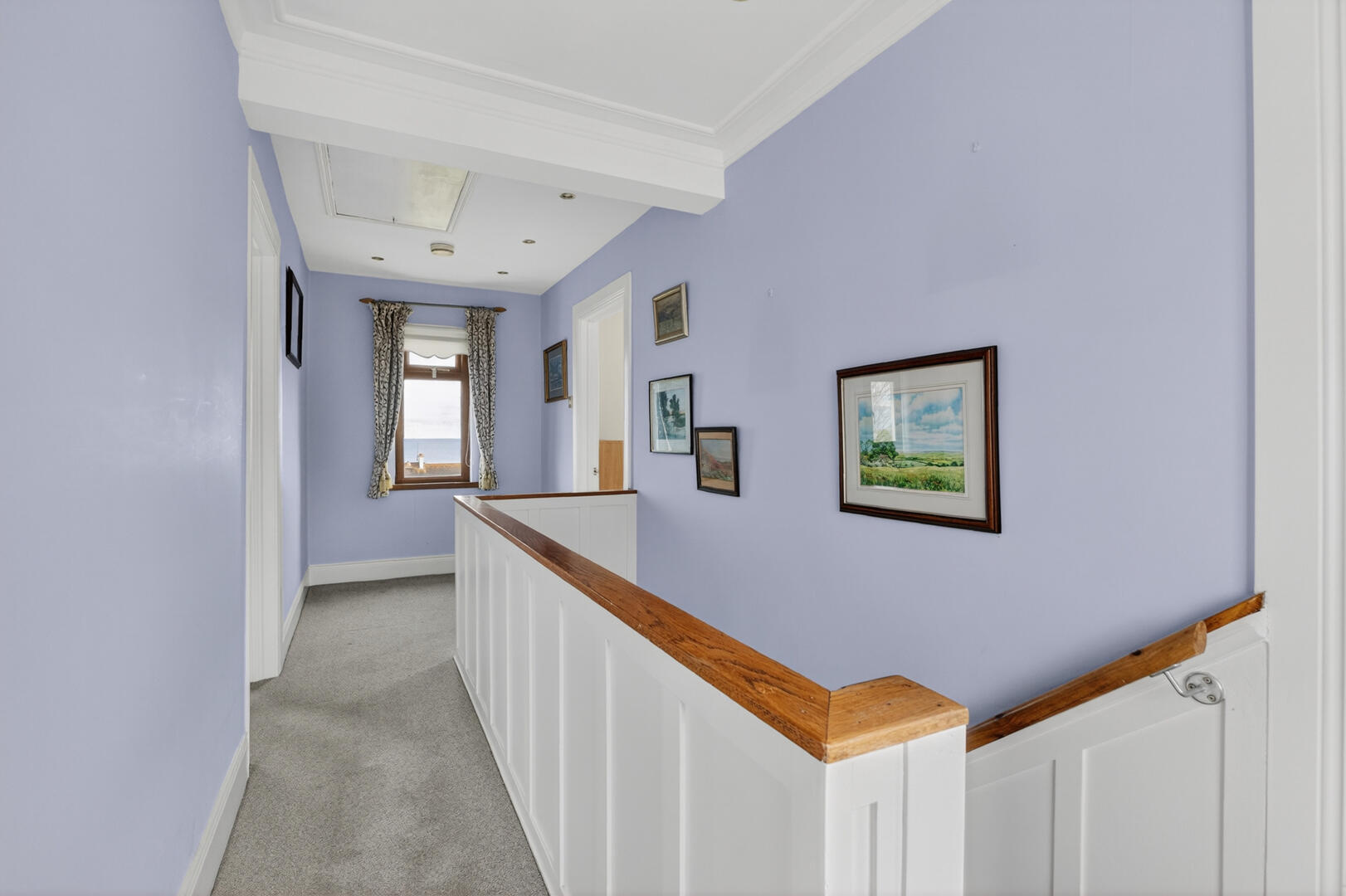 Study or office area with picturesque sea views, cornice ceiling and access to roofspace.