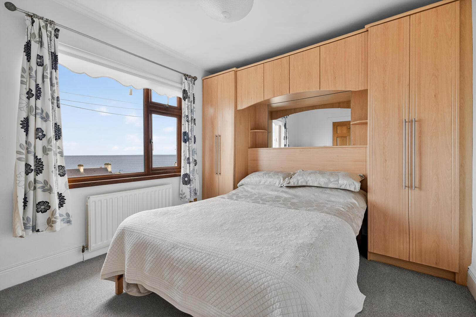Picturesque sea views, range of built-in furniture to include wardrobes and overhead storage.