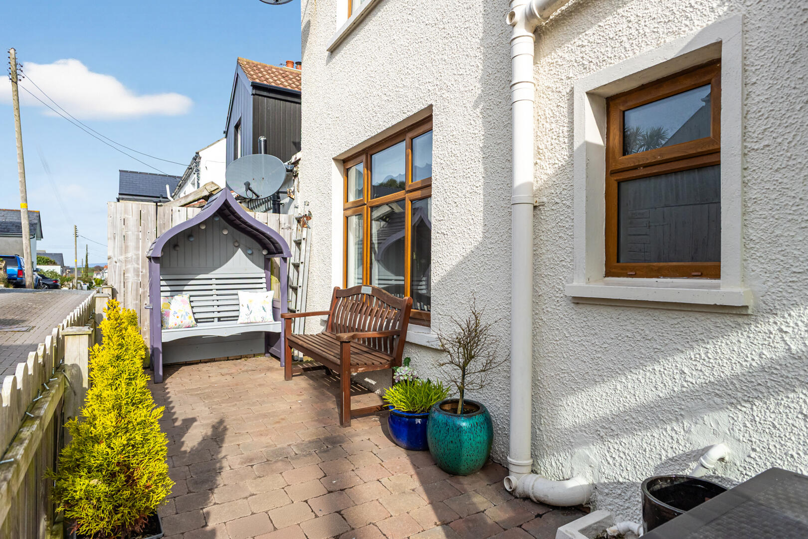 Delightful rear courtyard in attractive brick paviour with low maintenance aspect and southerly aspect, outside tap.