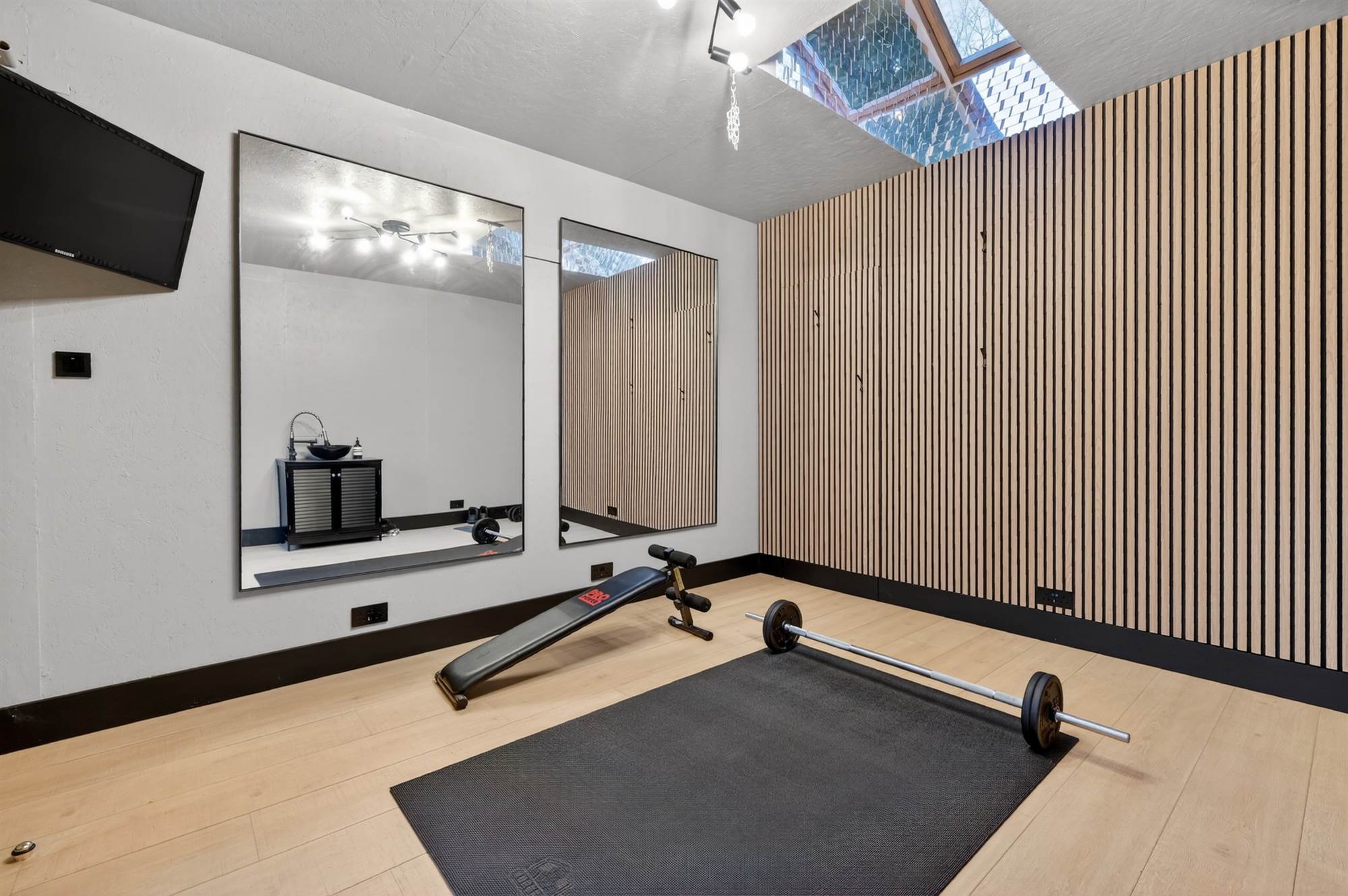 Finished in a way that complements the original home, the property is beautifully presented and tastefully decorated throughout. Externally, a detached garage reconfigured to a garage with gym.
