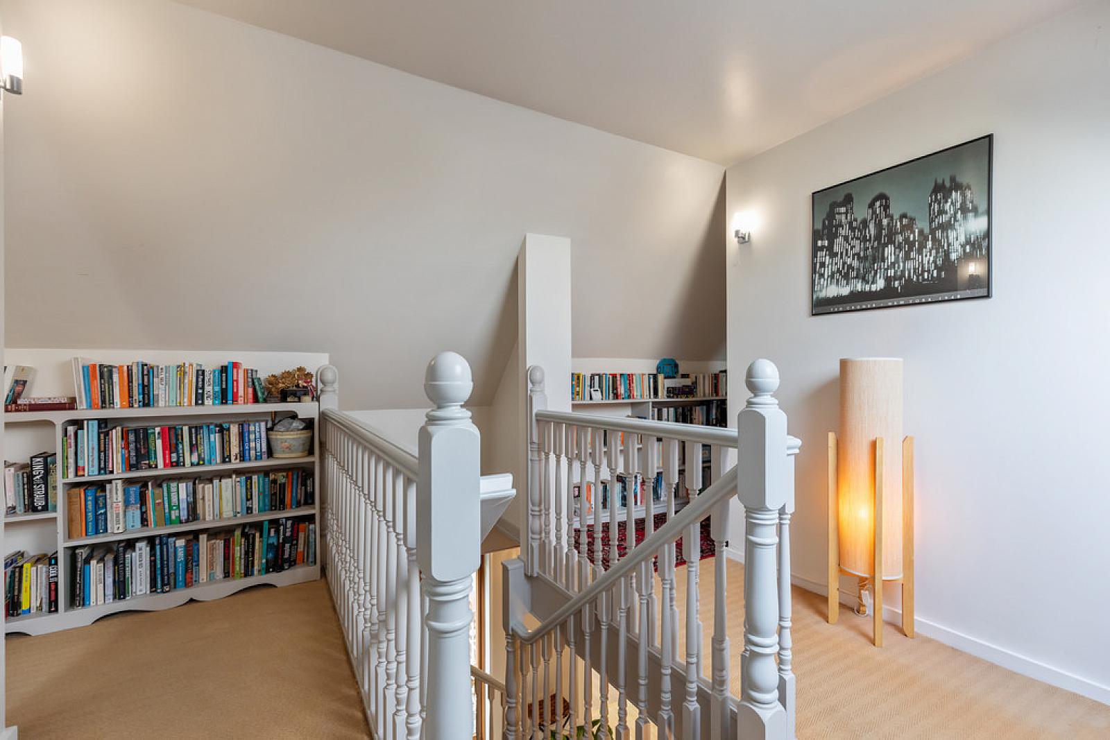 FIRST FLOOR LANDING Access to eaves and built-in shelving.