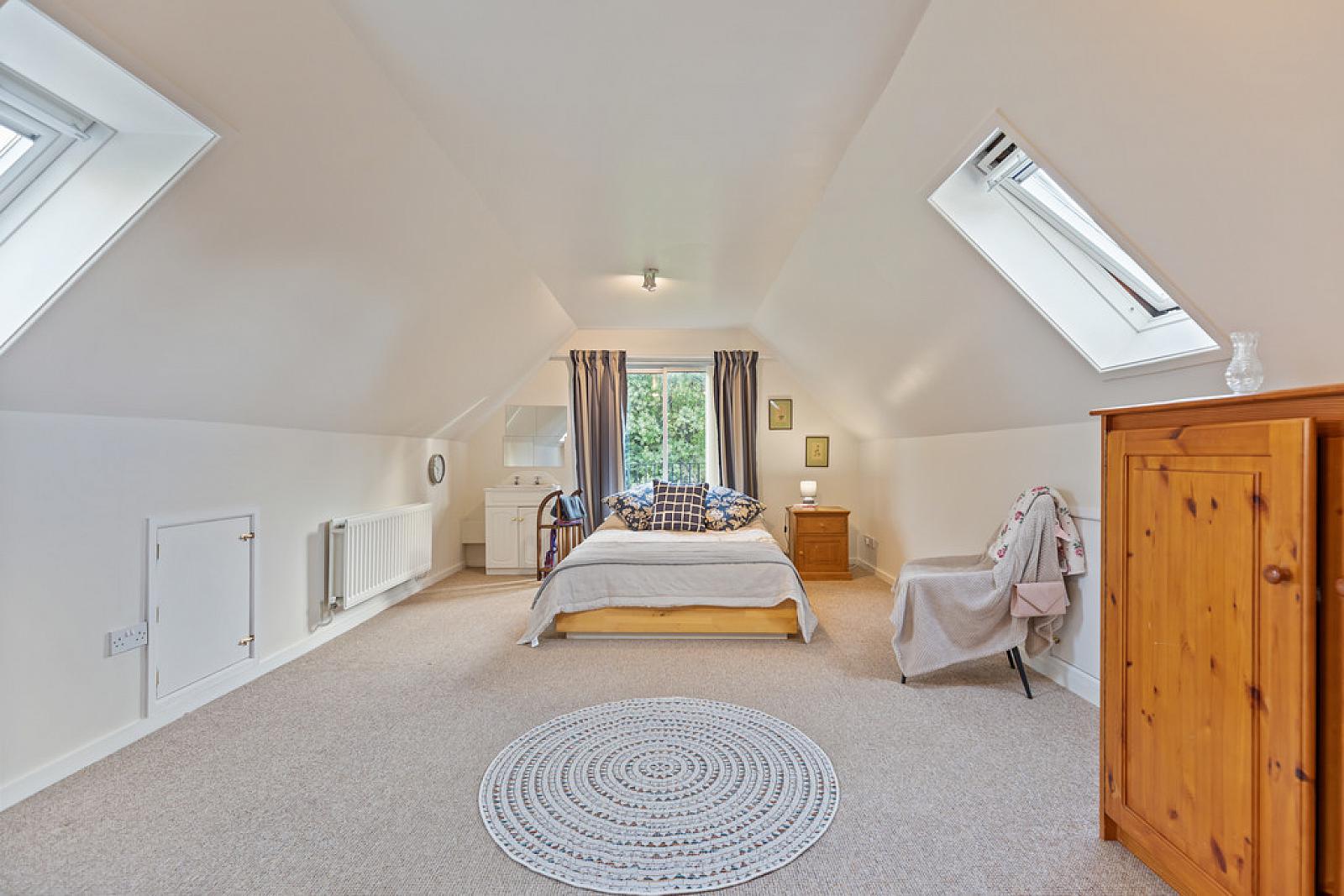 BEDROOM 3 23' 7" x 12' 8" (7.19m x 3.86m) Sliding door to 'Juliette Balcony' with views across garden access to eaves storage.