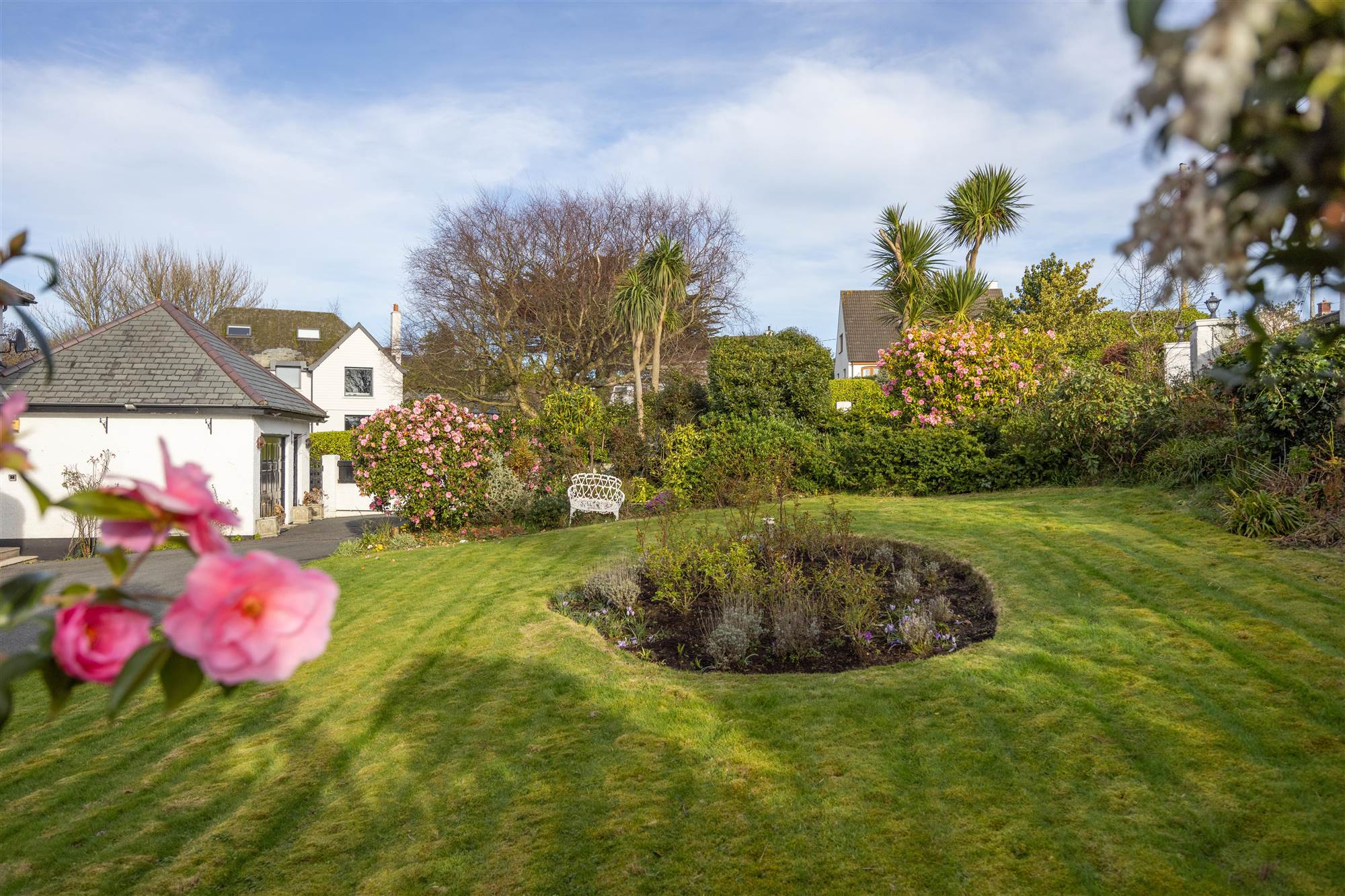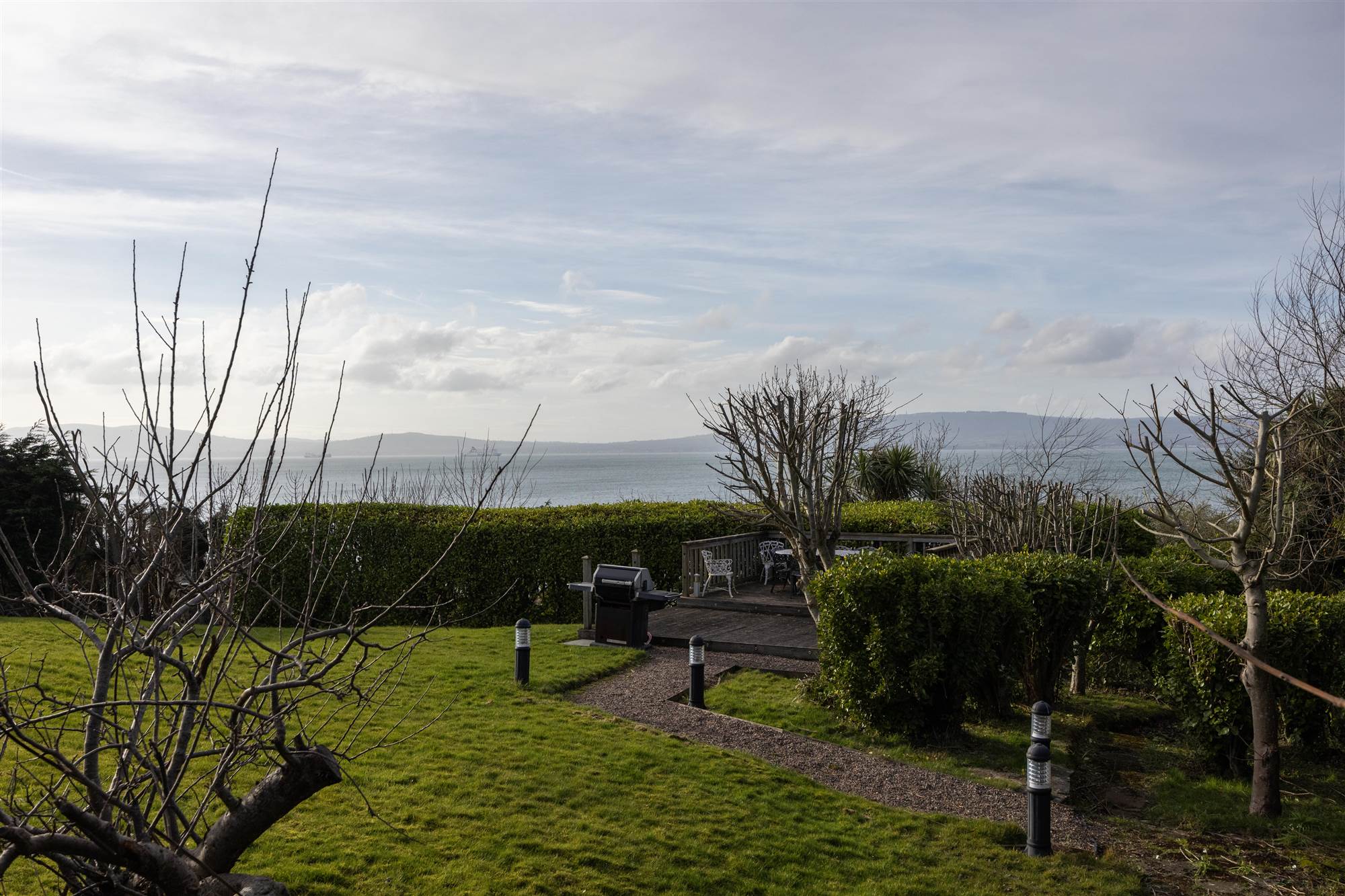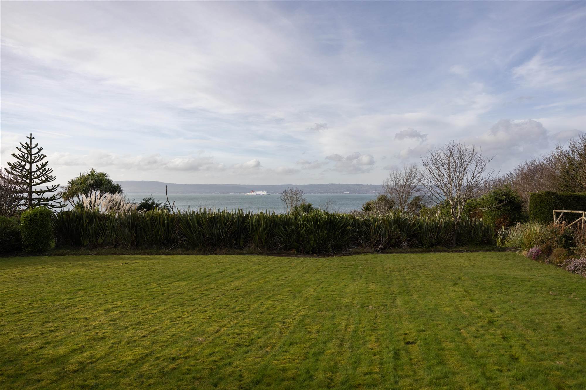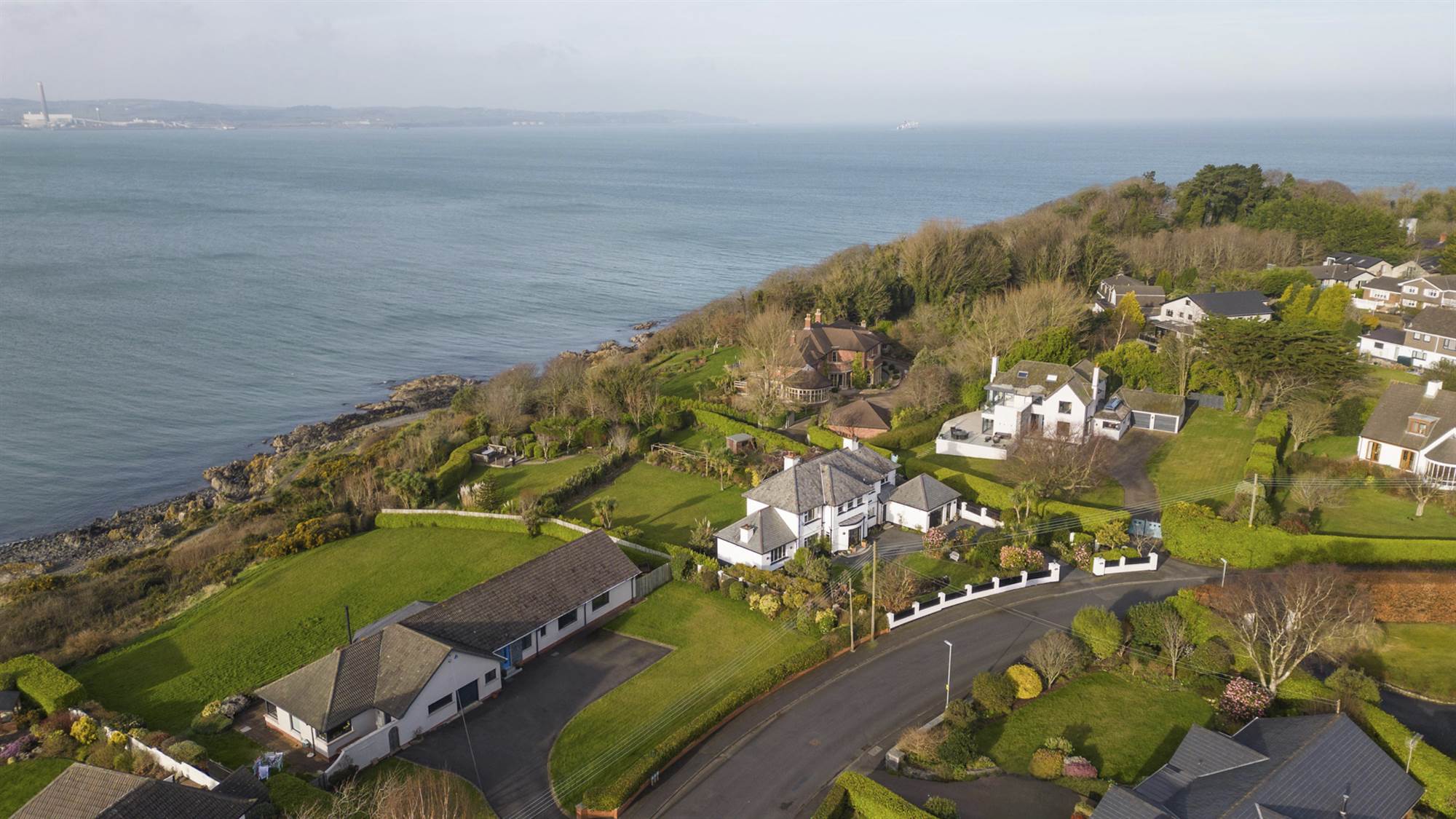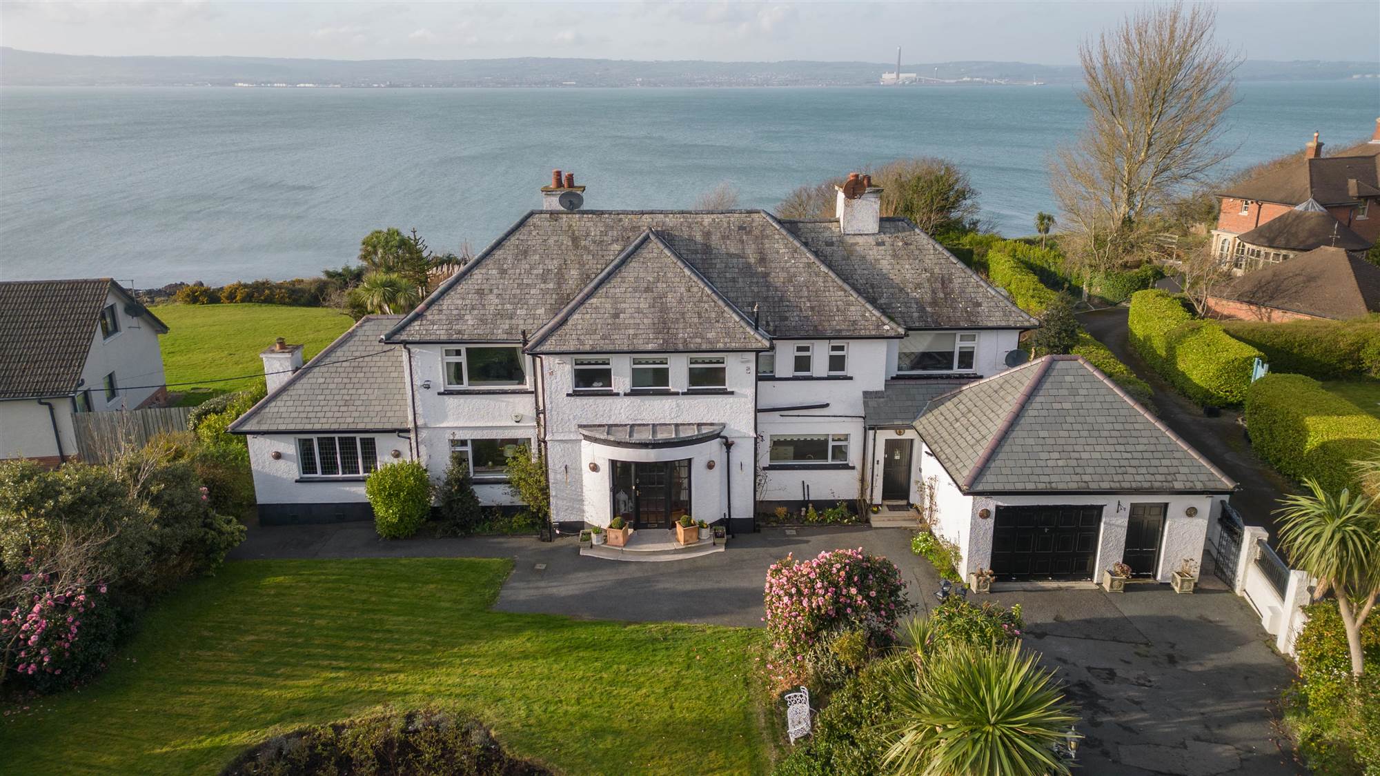 Superb site with extensive gardens in lawns, mature shrub beds looking directly out to Belfast Lough