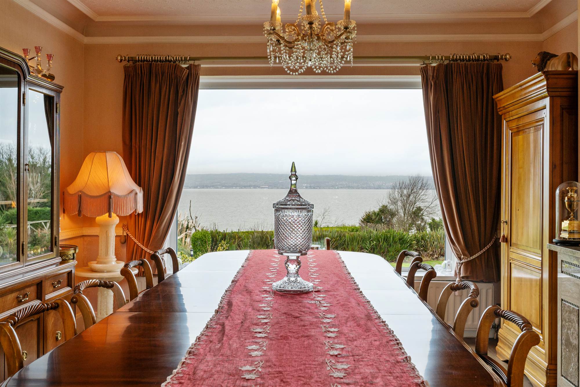 Located on one of the finest stretches of coastline in North Down, this property enjoys an enviable elevated mature site with panoramic views over the gardens to Belfast Lough.