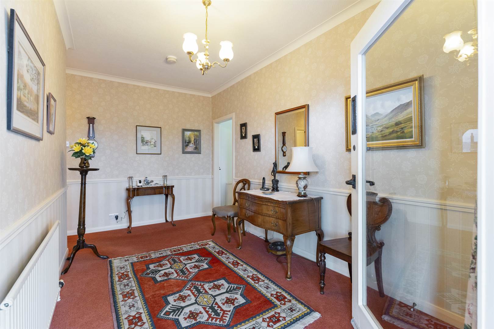 Coved ceiling, views into rear garden.