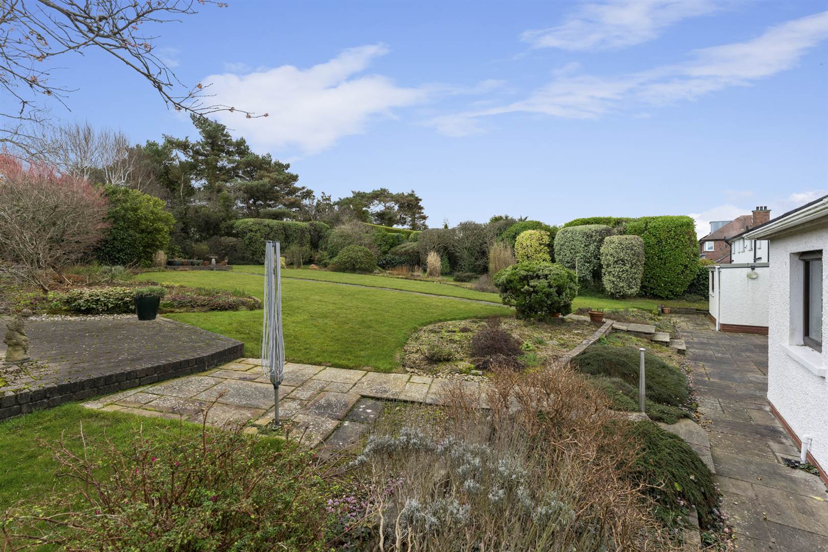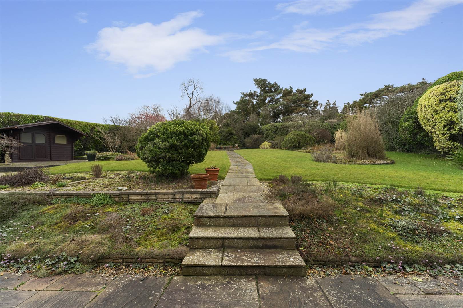Beautiful, landscaped gardens to front and enclosed to rear in lawns, flowerbeds, borders, hedges and mature shrubs. Sandstone paths and patio.
