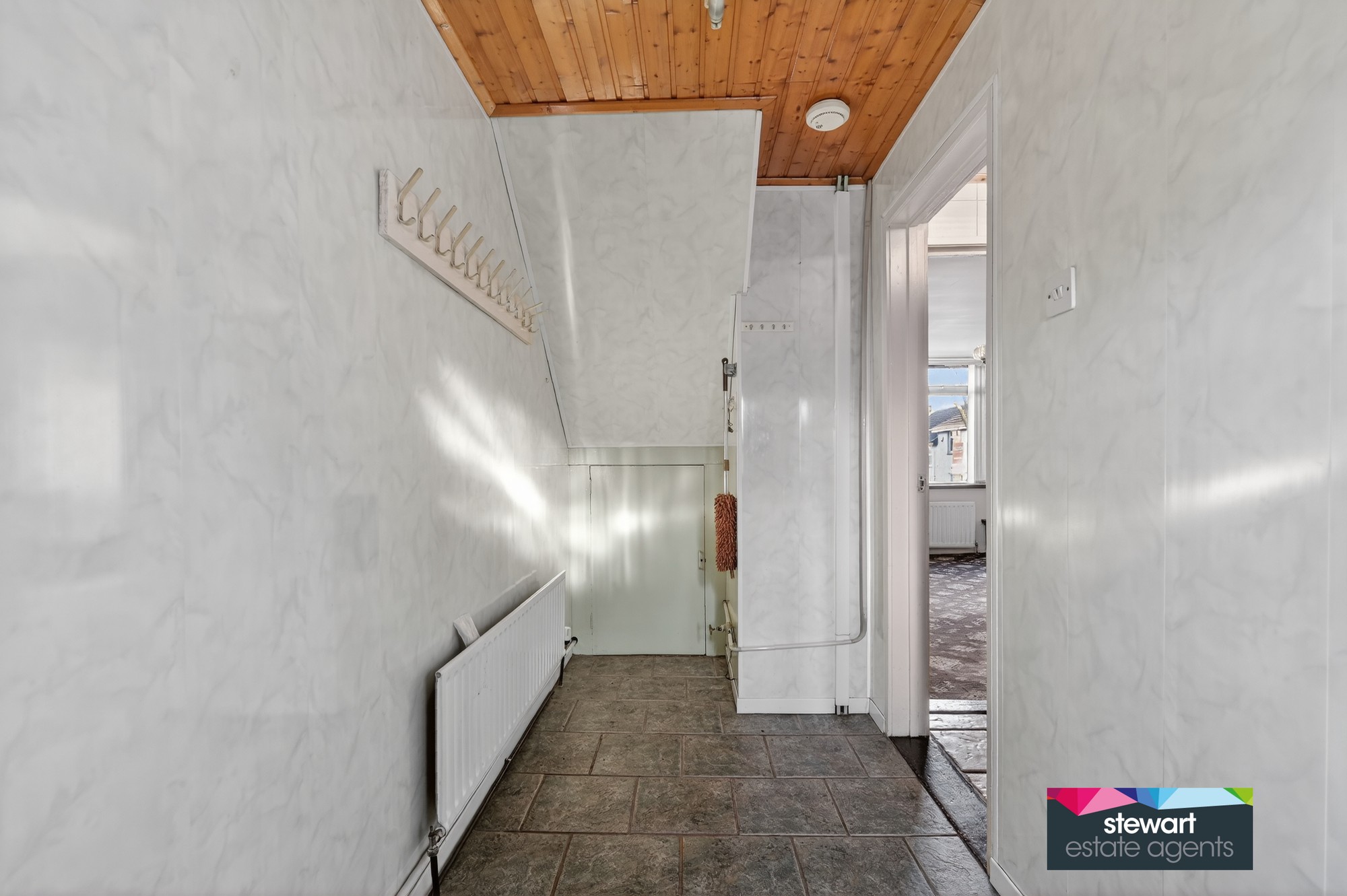 Rear hallway with cloaks area and under stairs storage