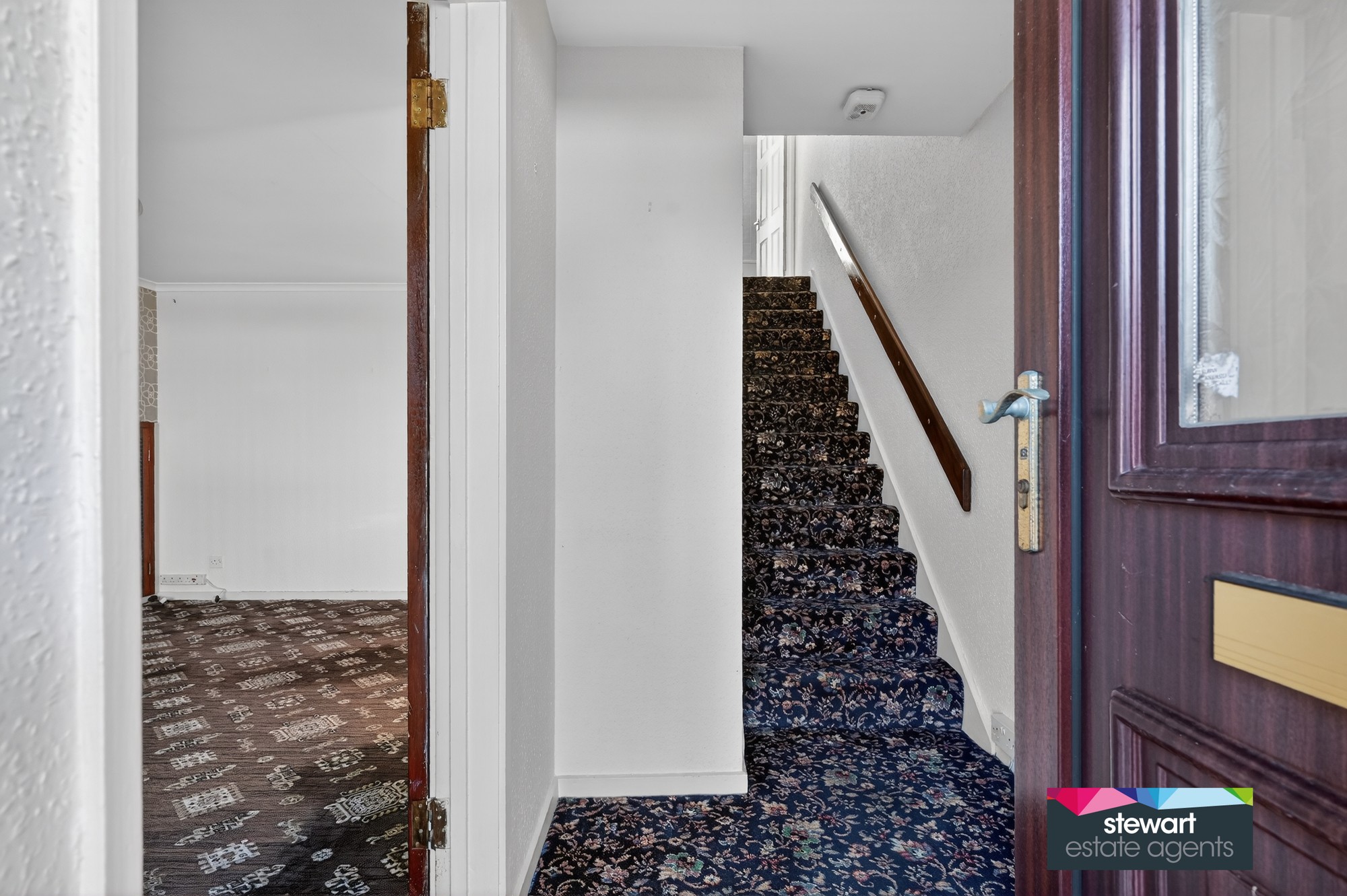 PVC front door, leading into the hallway with stairs to the first floor accommodation