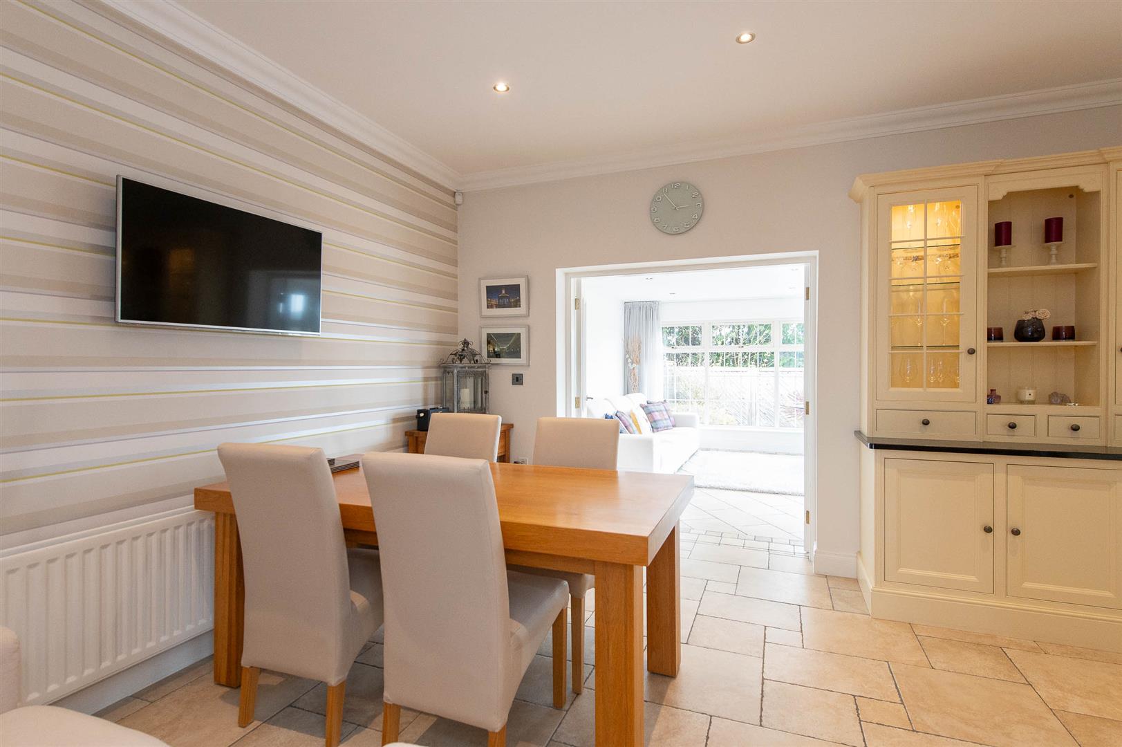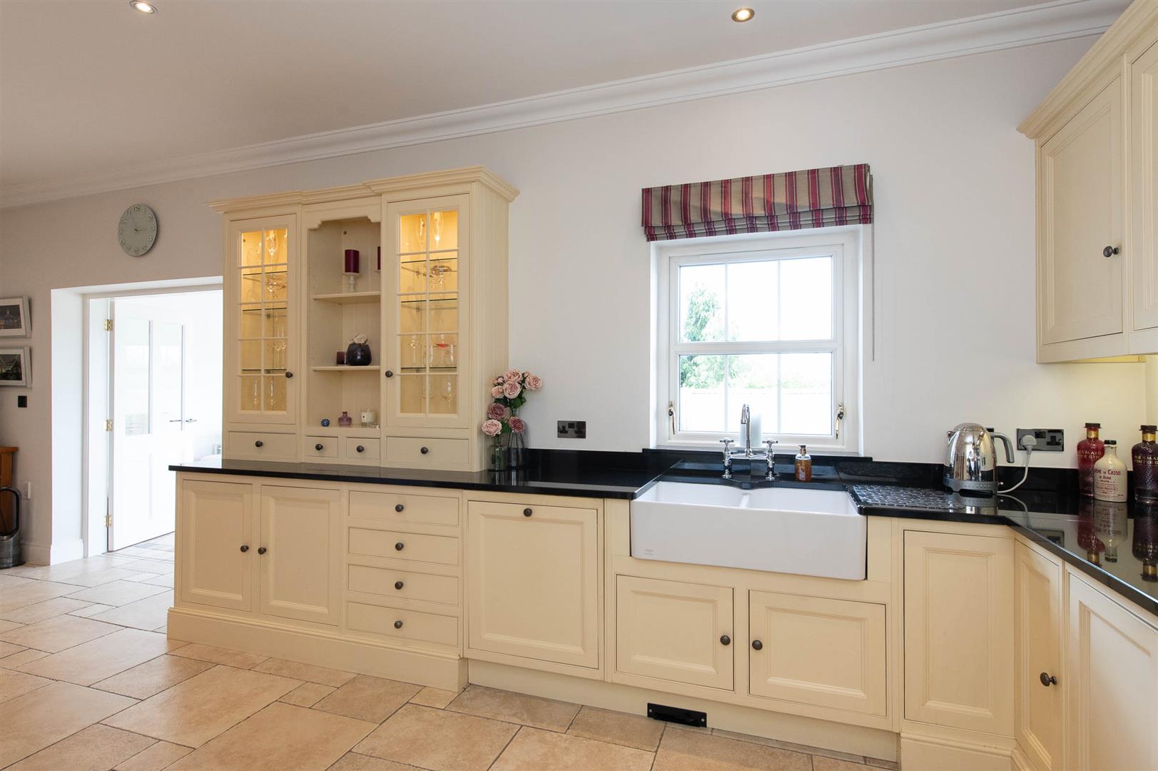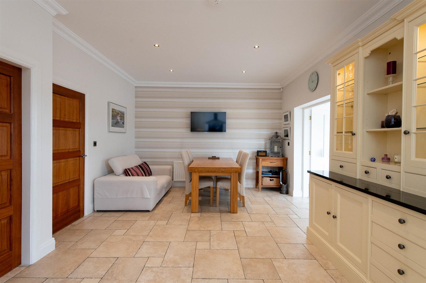 A stunning open-plan kitchen and dining area with bespoke fitted kitchen units, a Villeroy & Boch double Belfast sink and Granite worktops, and an adjoining utility room, truly elevates modern living. This impressive space seamlessly connects to a beautiful sunroom.