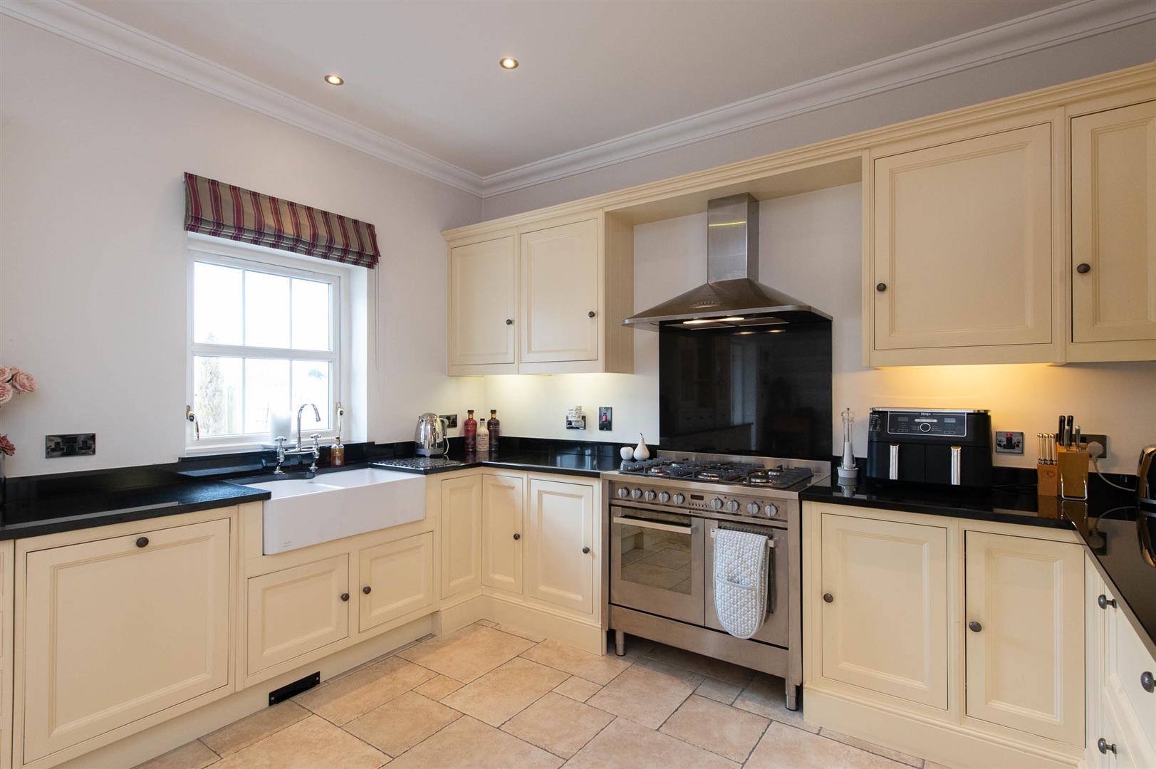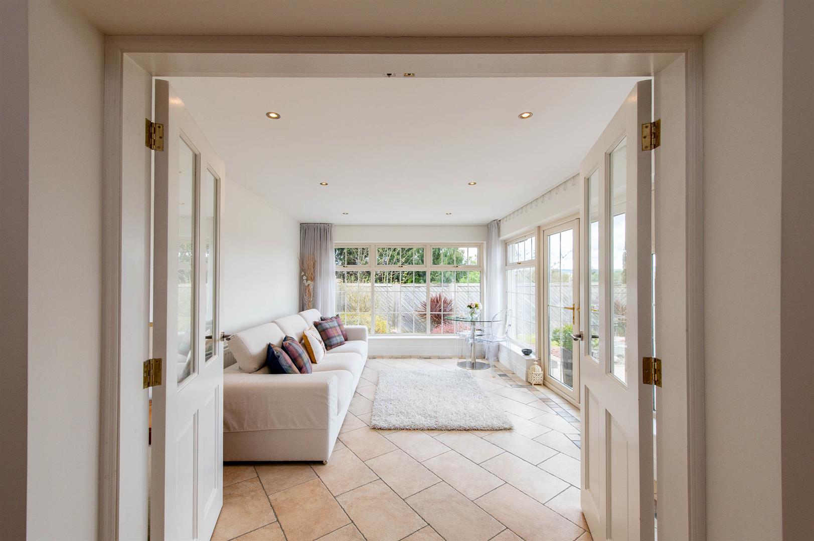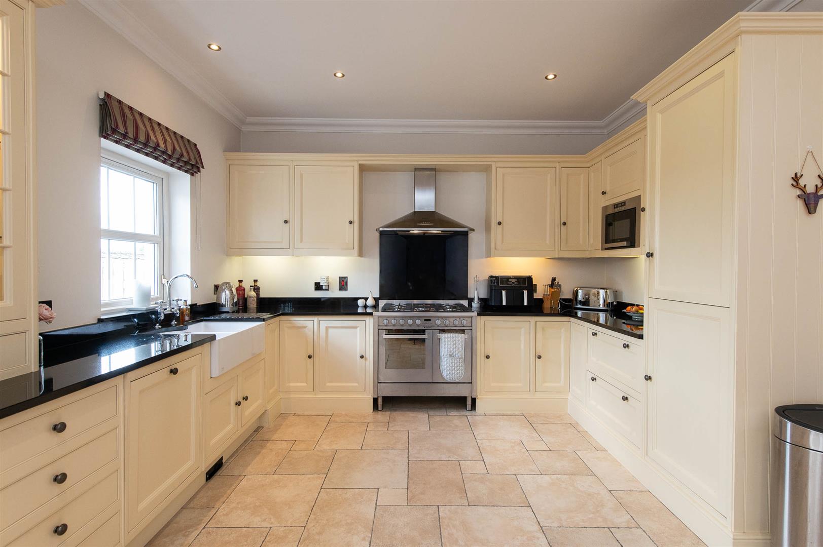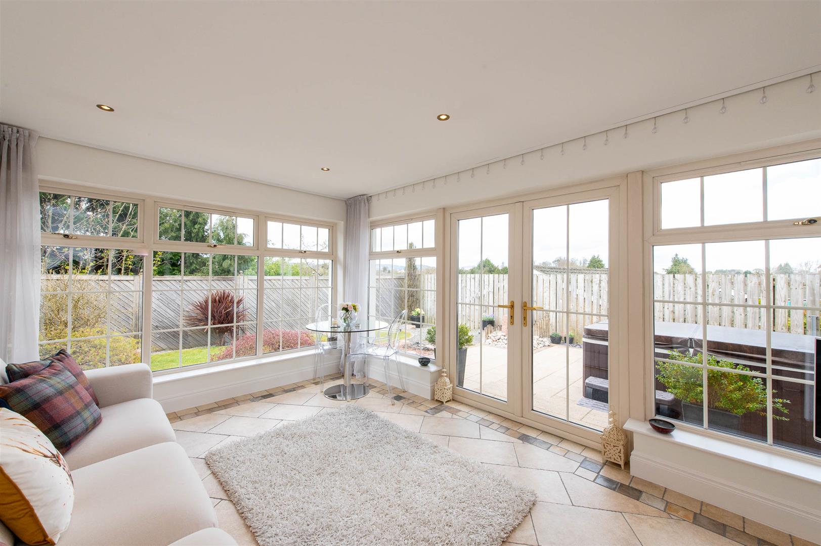 A stunning open-plan kitchen and dining area with bespoke fitted kitchen units, a Villeroy & Boch double Belfast sink and Granite worktops, and an adjoining utility room, truly elevates modern living. This impressive space seamlessly connects to a beautiful sunroom.