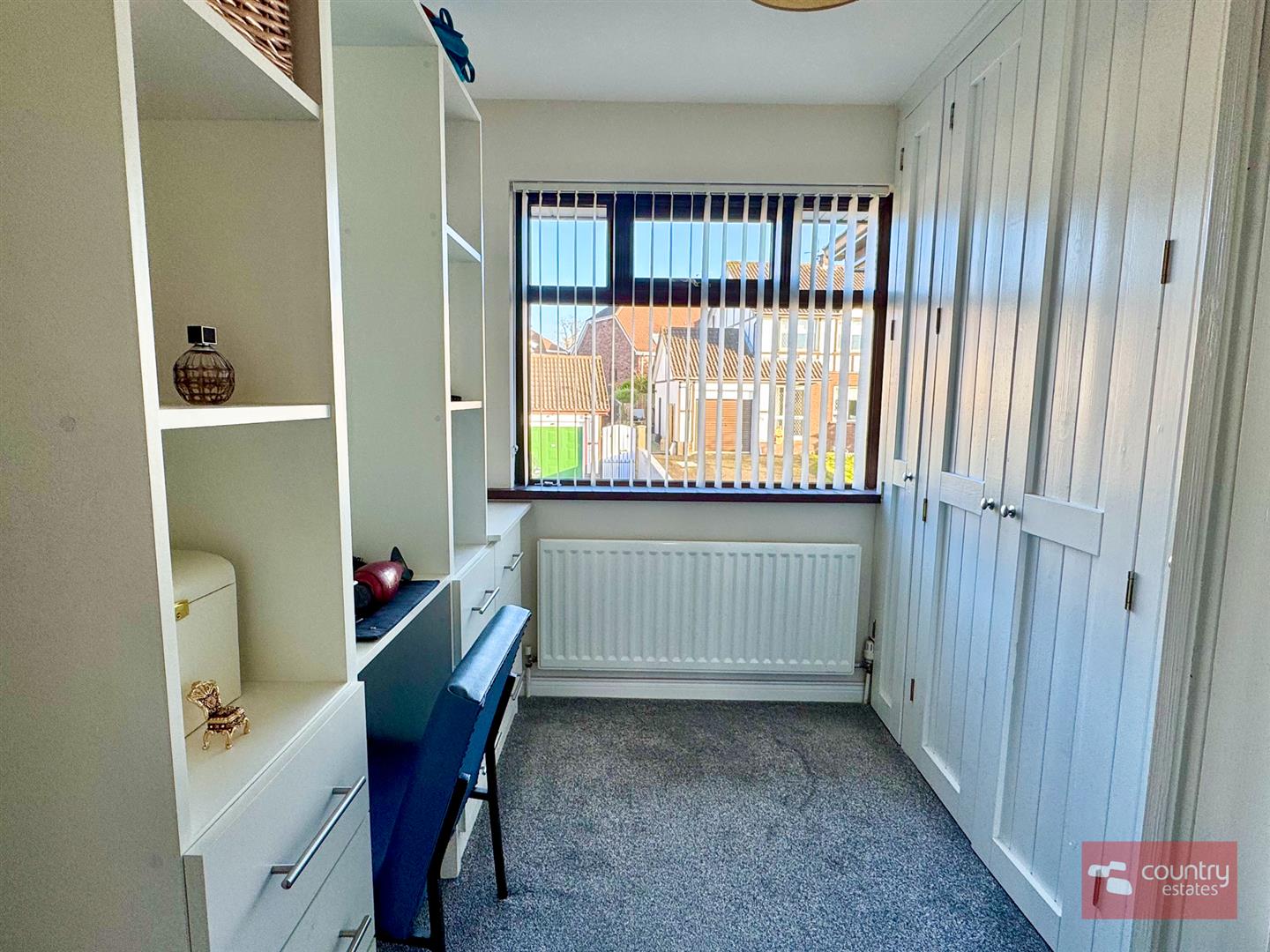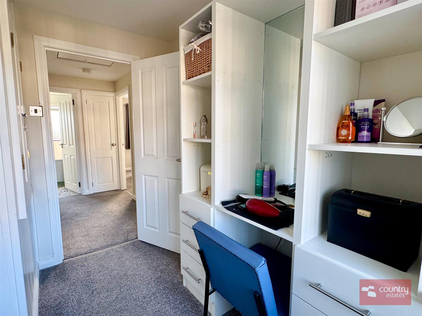 Presently used as dressing room. Bespoke built in wall to wall fitted wardrobes with integrated hanging space and pull out tray drawers.