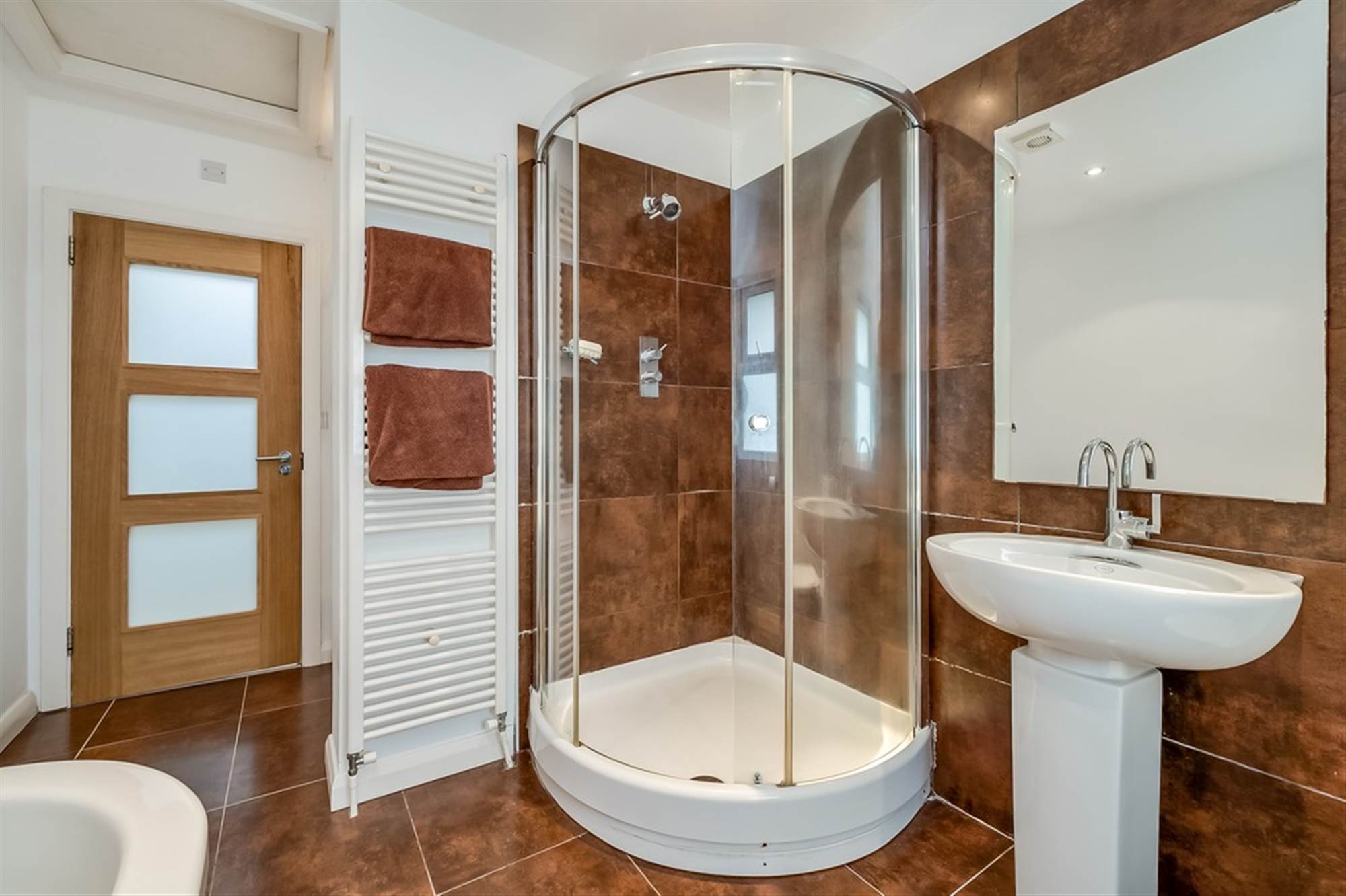 Bath. Bidet. WC. Wash hand basin. Heated towel rail.