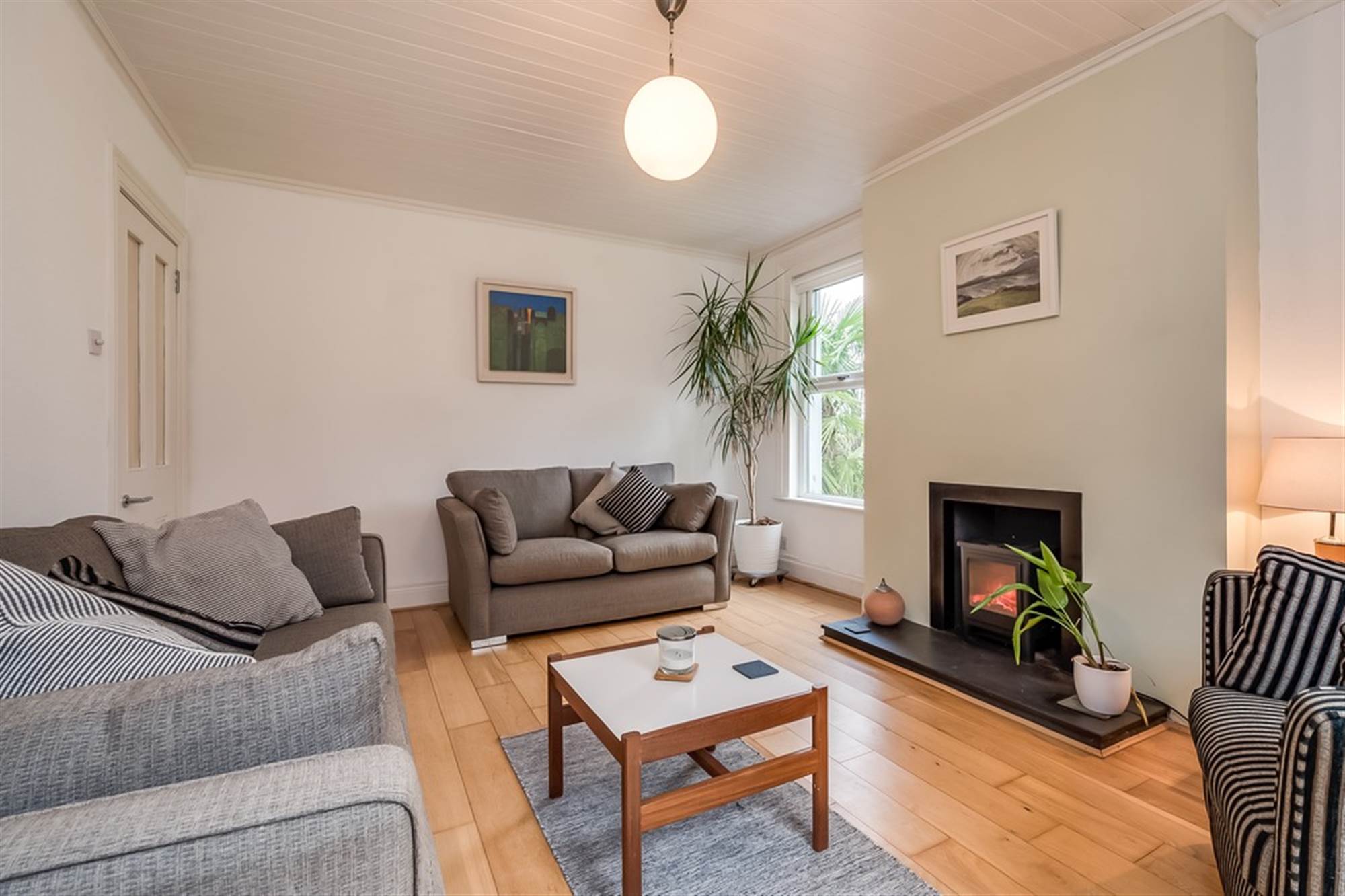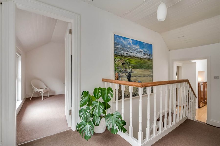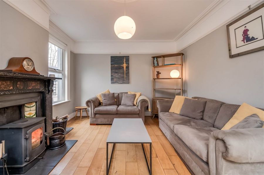 Period fireplace and wood-burning stove. Period corniced ceiling and ceiling rose. Solid oak wide plank flooring. Window casements. Picture rail. Period skirtings.
