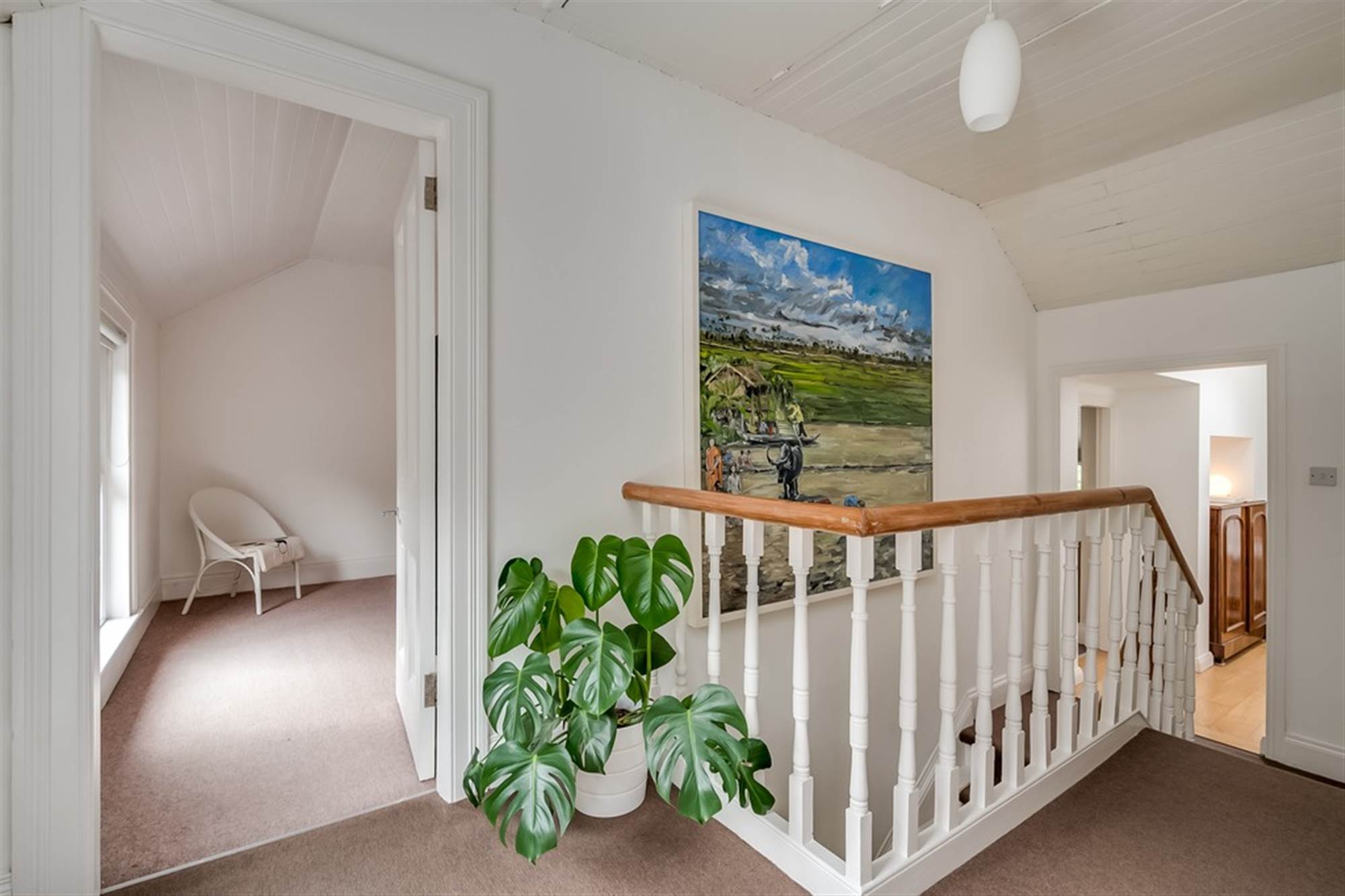 Windows with casement surrounds offering views to Forest Park and fields. Tongue and grooved timber ceilings.