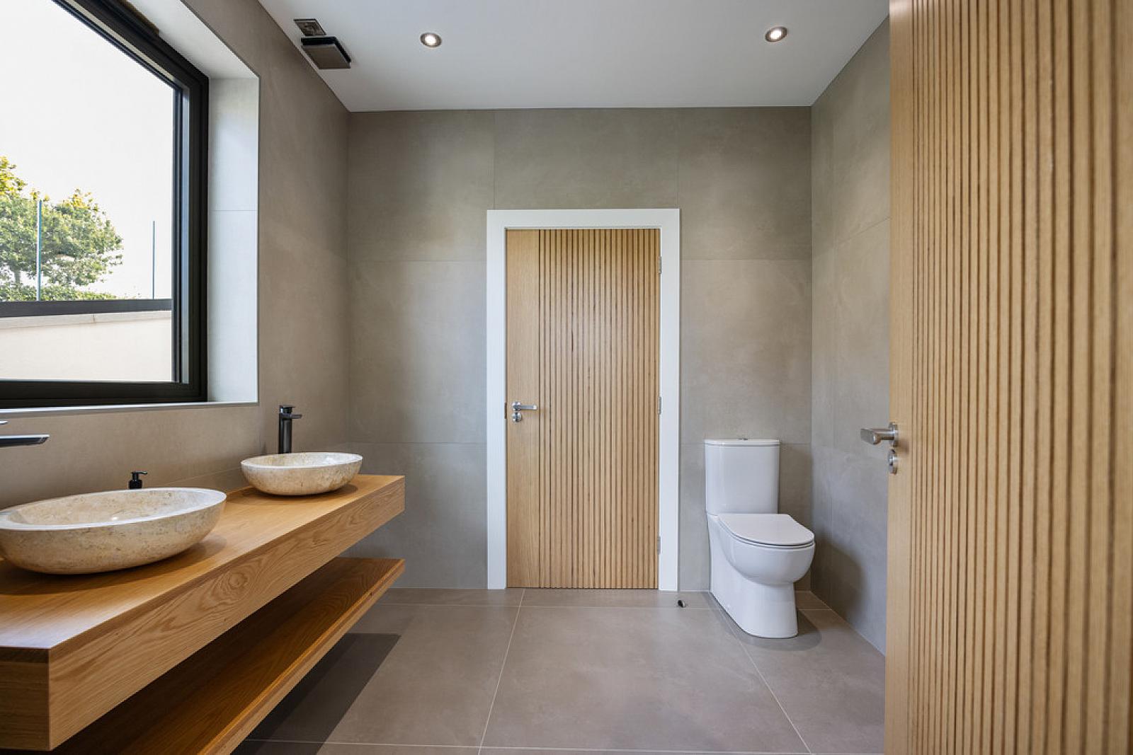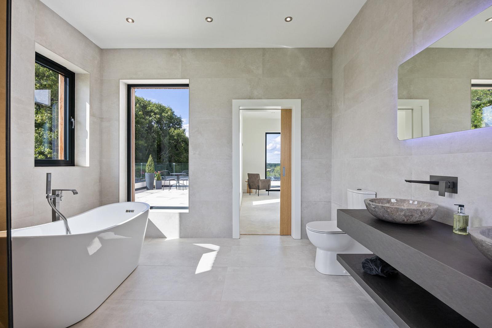 The bedroom accommodation is equally luxurious, with each bedroom benefitting from either an ensuite or Jack and Jill bathroom, all fitted to an exceptional standard. The principal suite is particularly noteworthy, with direct access to a private terrace and a sense of space and light that epitomises the home's contemporary aesthetic.