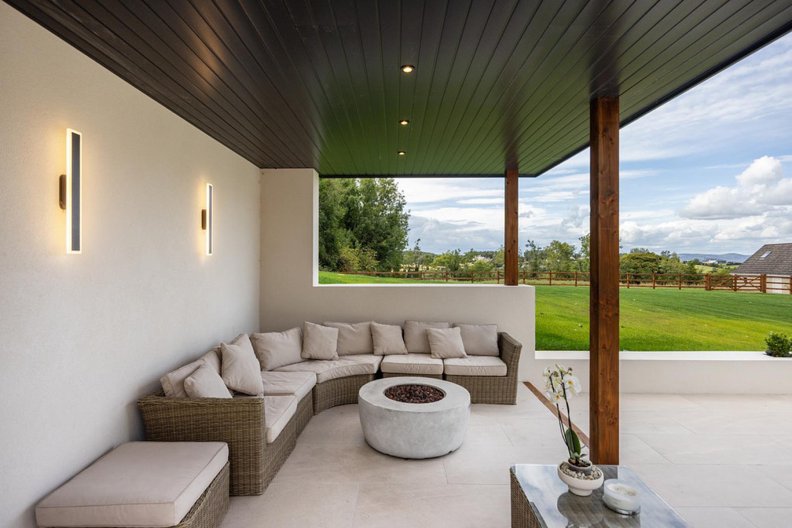 Automated timber entrance gates, extensive tarmac driveway and car parking areas (front and rear), garden in lawn with beech hedging, feature lighting, extensive paved patio area to rear, covered barbeque/entertainment area, feature lighting and power supply.