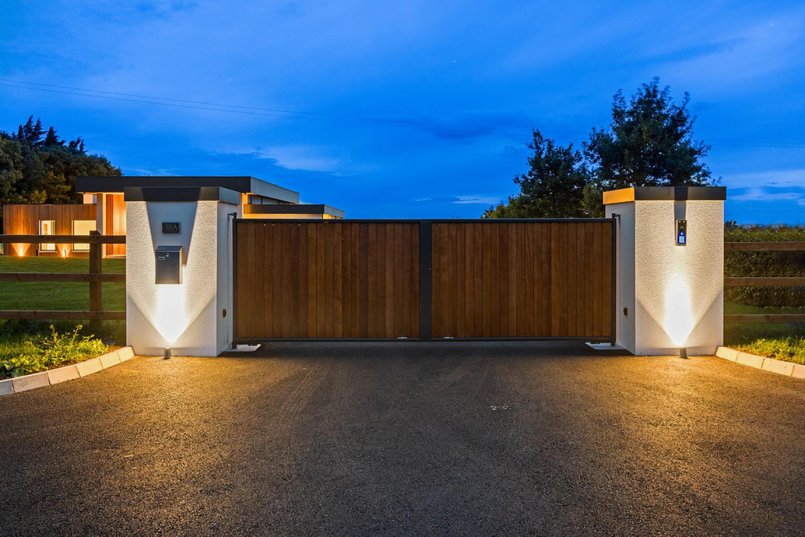 Approached through automated timber gates, opening to landscaped gardens and peaceful outdoor spaces
