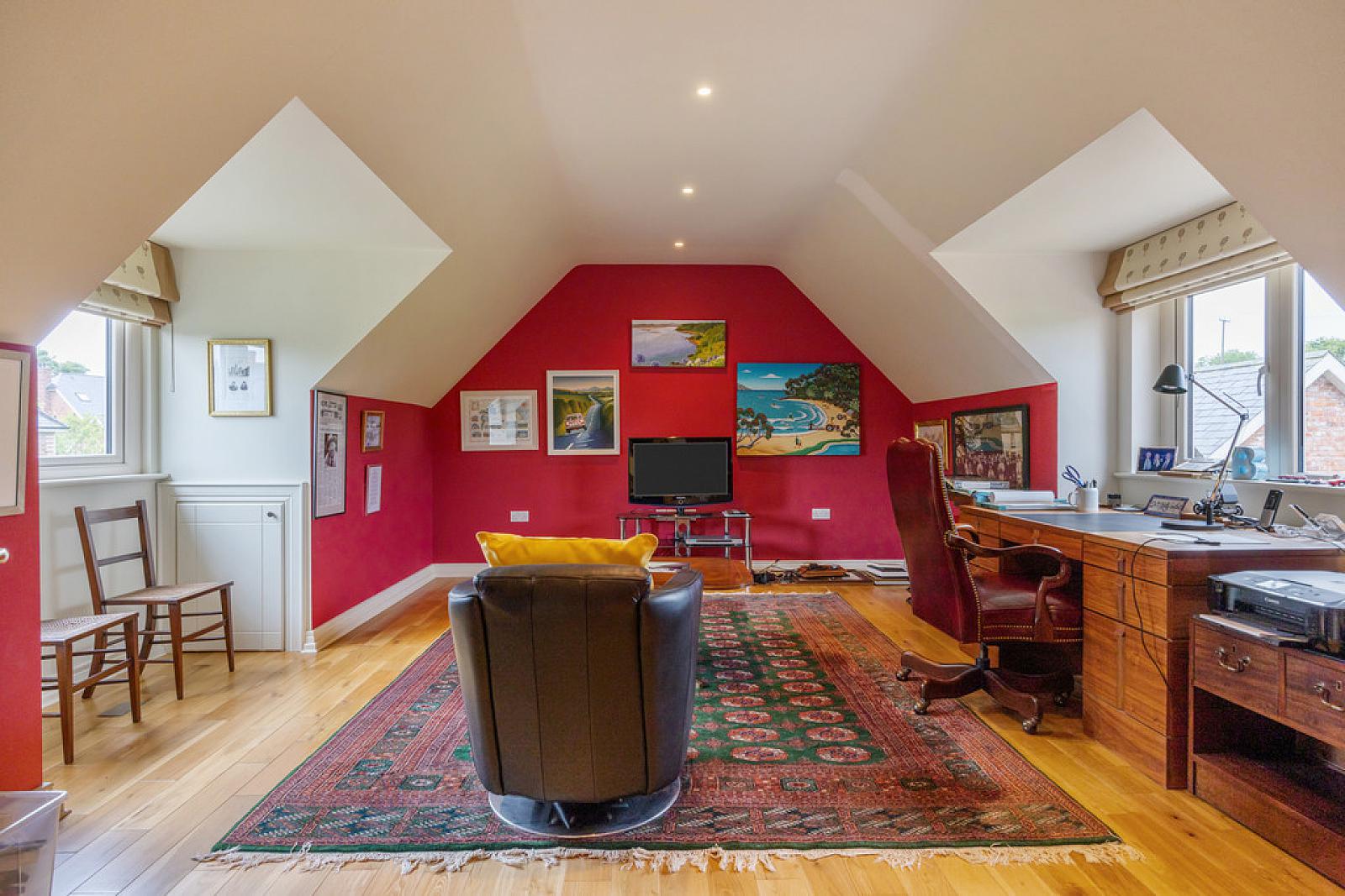 BEDROOM 3 19' 2" x 13' 1" (5.85m x 4.0m) @ widest points Rural aspect to rear. Solid oak flooring. Access to under eaves storage.