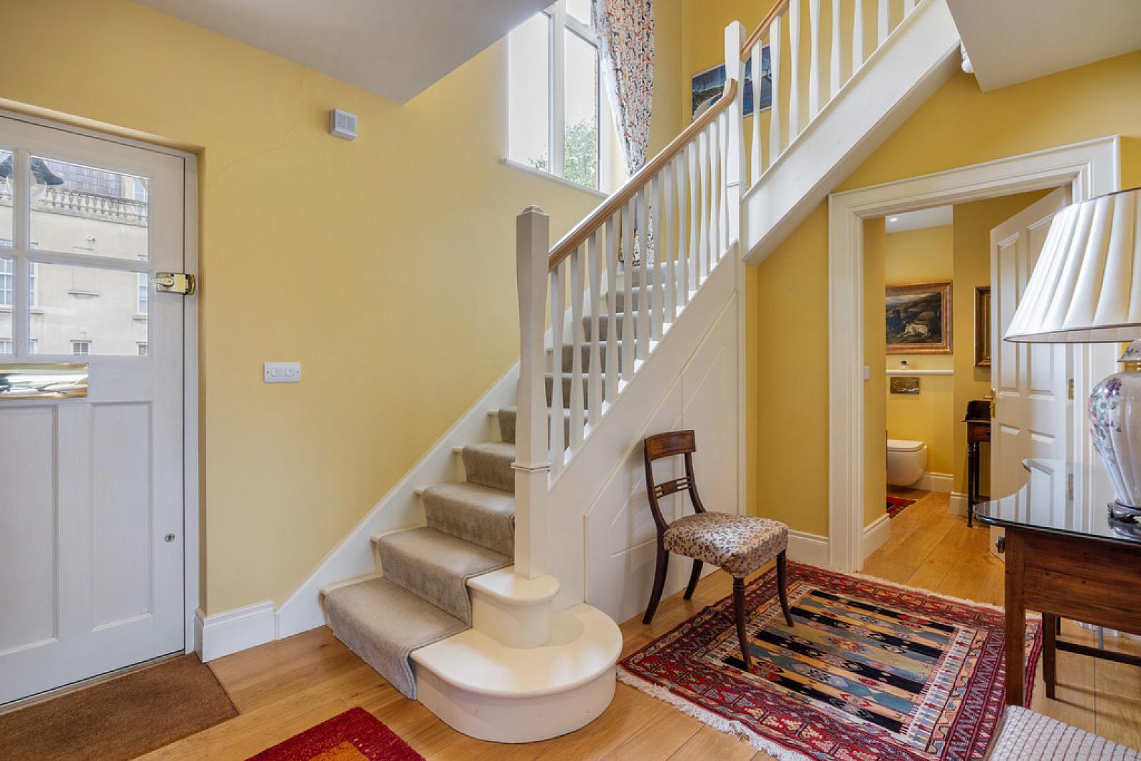 ENTRANCE HALL Hardwood, double glazed front door. Solid French oak flooring. Stairwell to gallery landing. Access to under stairs store. Feature height ceiling, continuing throughout remainder of home.