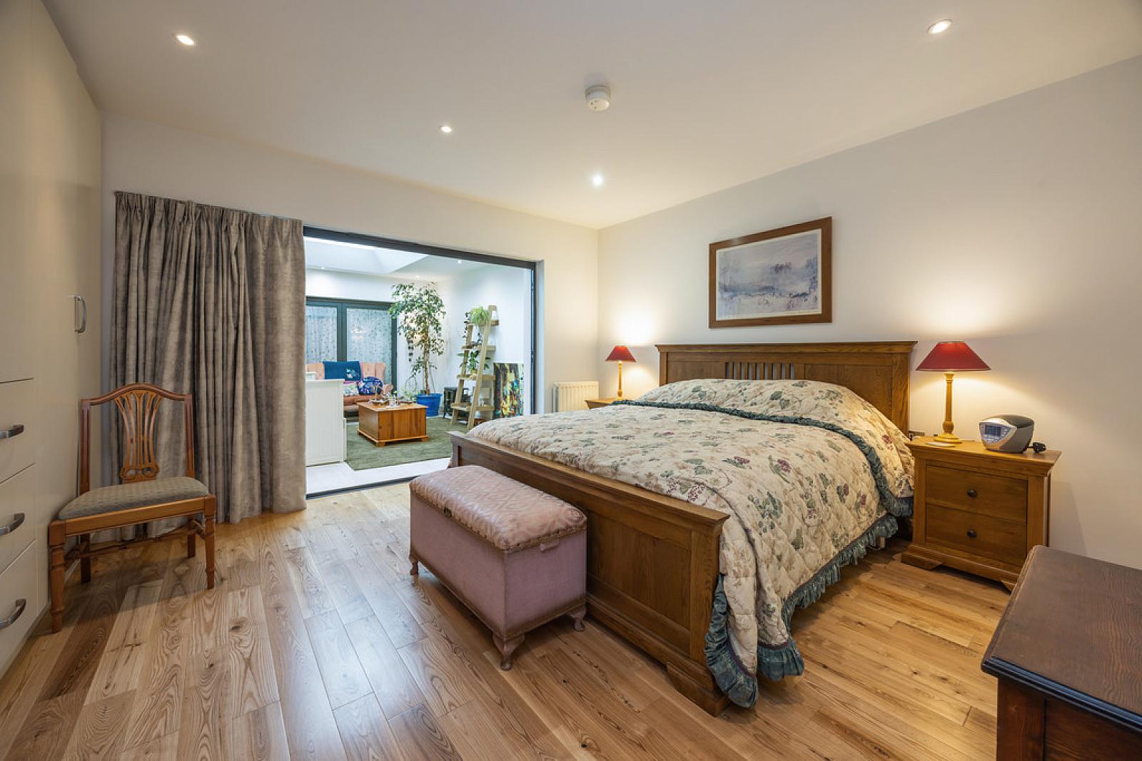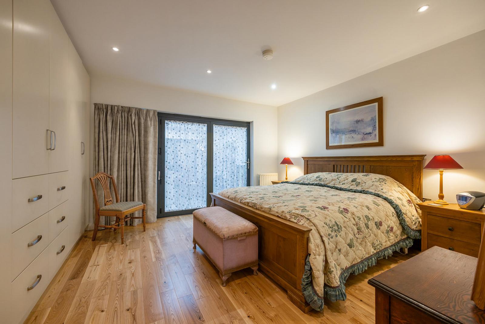 BEDROOM 13' 0" x 12' 11" (3.96m x 3.94m) Range of built in wardrobes, recessed low voltage spotlights, solid ash flooring, door to Sitting Room.