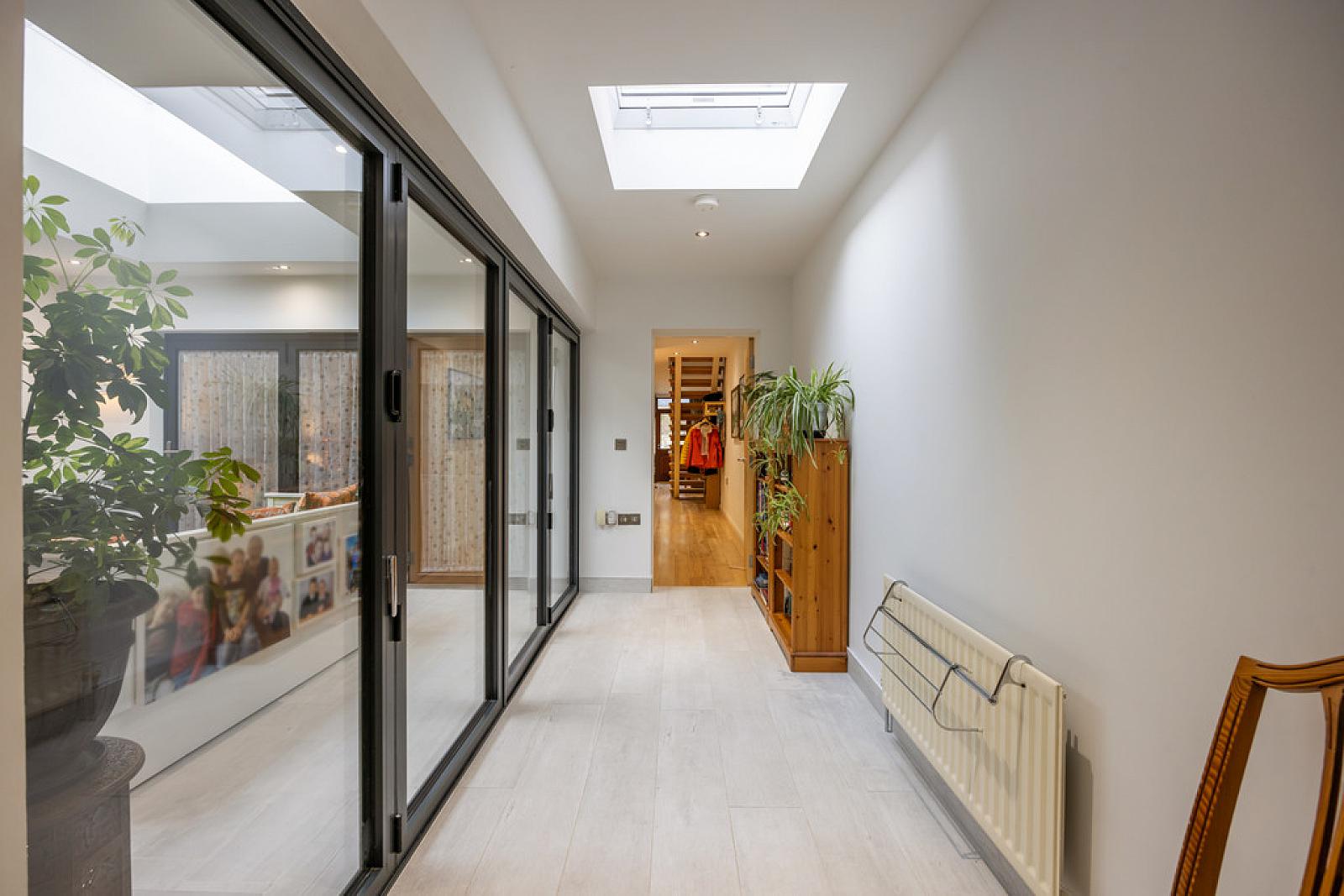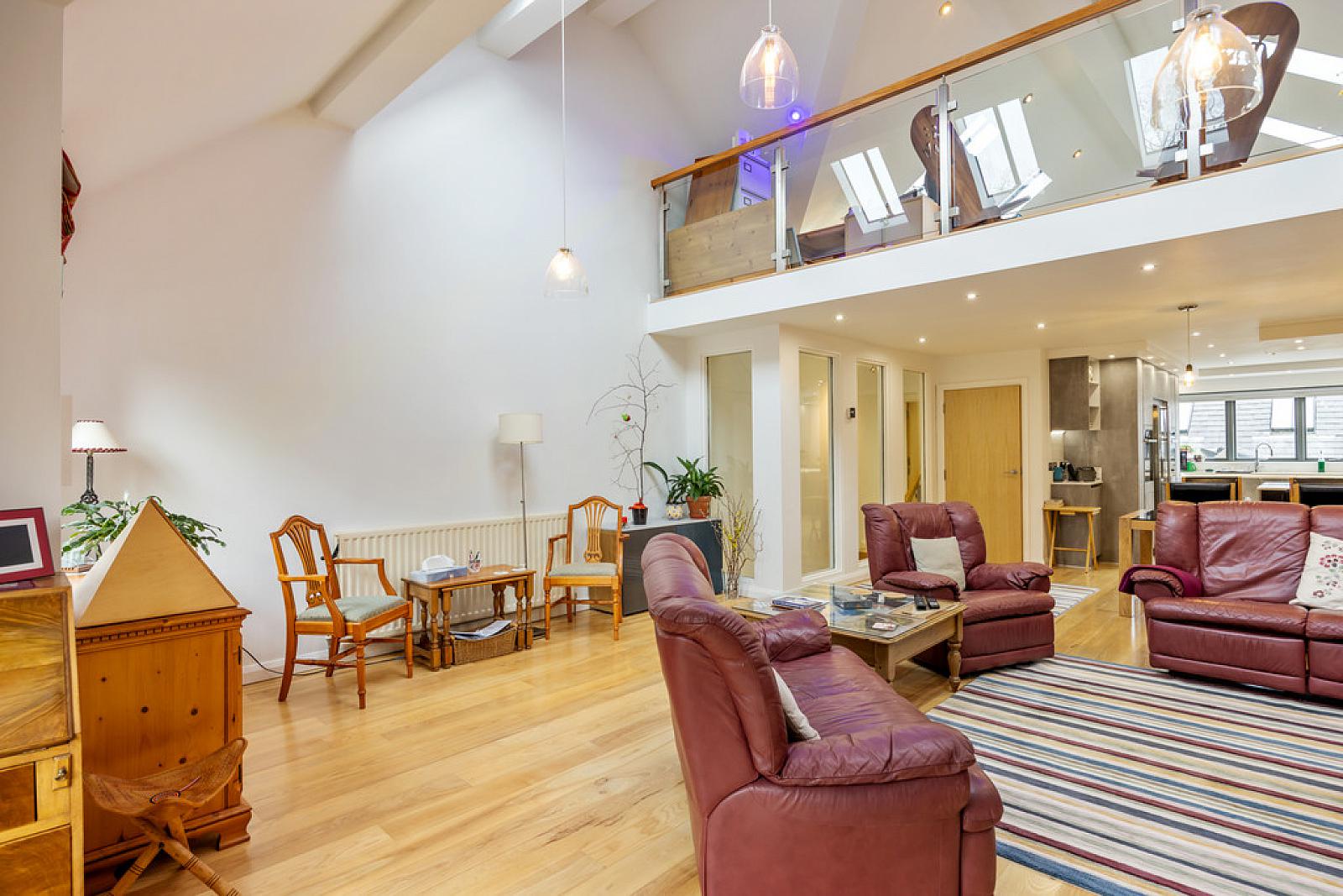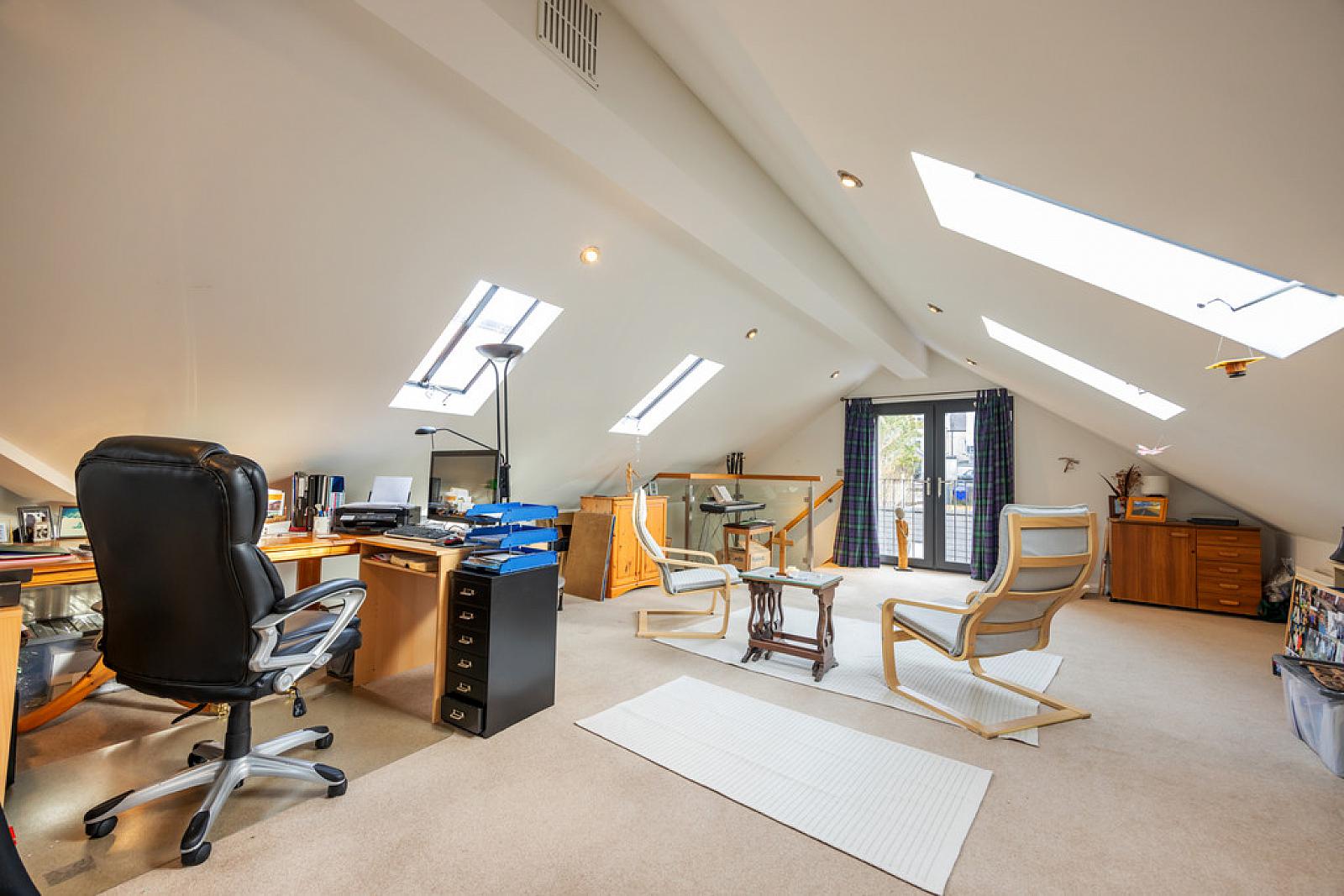 SITTING ROOM 13' 11" x 12' 11" (4.24m x 3.94m) Tiled floor with electric underfloor heating, vaulted ceiling with 3x Velux Skylights.