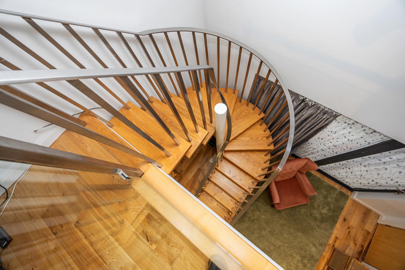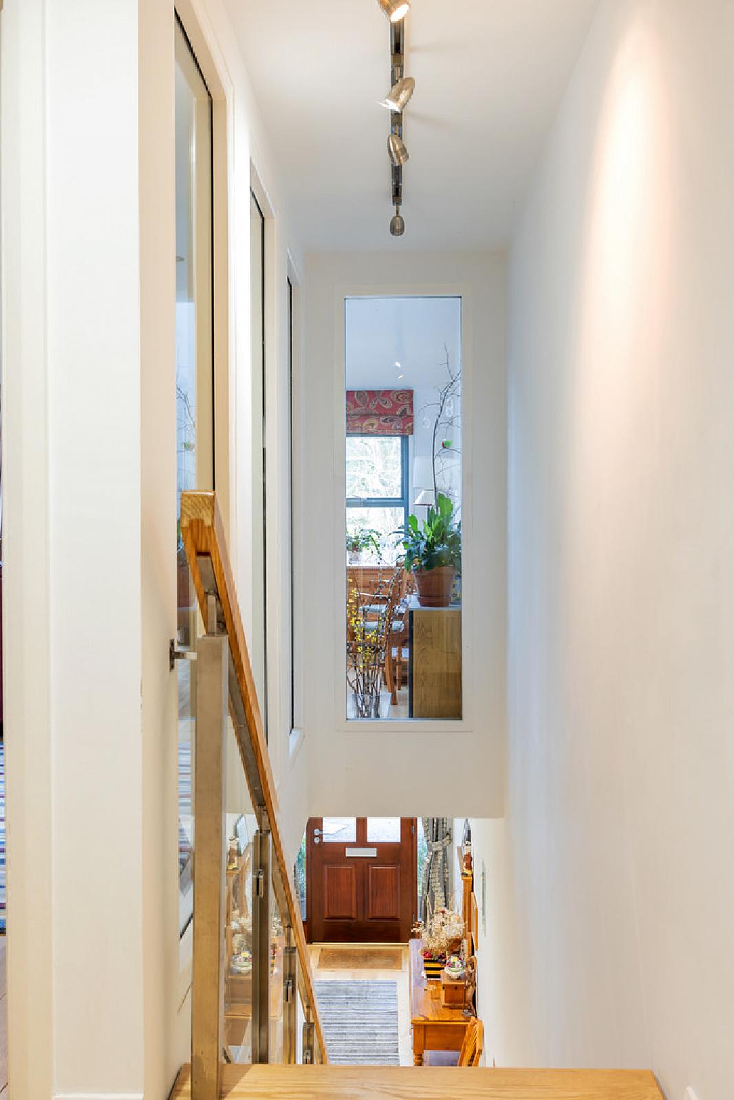 FIRST FLOOR LANDING Solid Ash hardwood flooring, stairs to Mezzanine level.