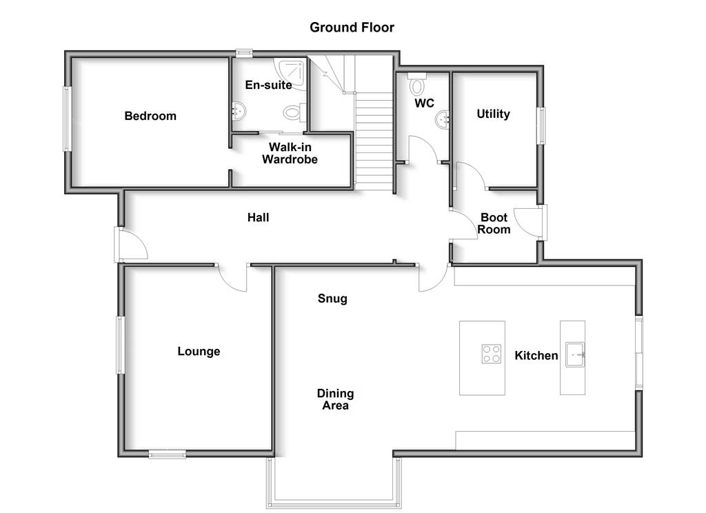 The accommodation in brief comprises reception hall, cloakroom (WC and wash hand basin), lounge, large open plan kitchen dining area and snug. Main bedroom with walk-in dressing room and en suite shower room, utility room and boot room.