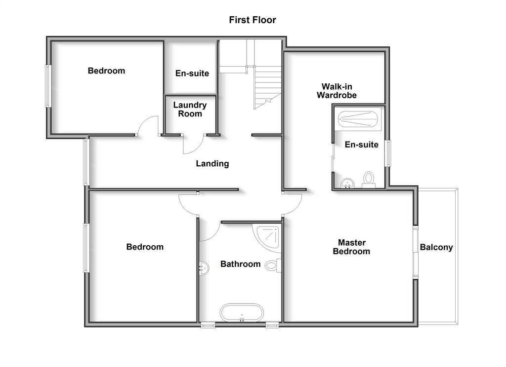 On the first floor there are three further most spacious bedrooms - one with en suite shower room and another main bedroom with walk-in dressing room and en suite shower room along with feature balcony.