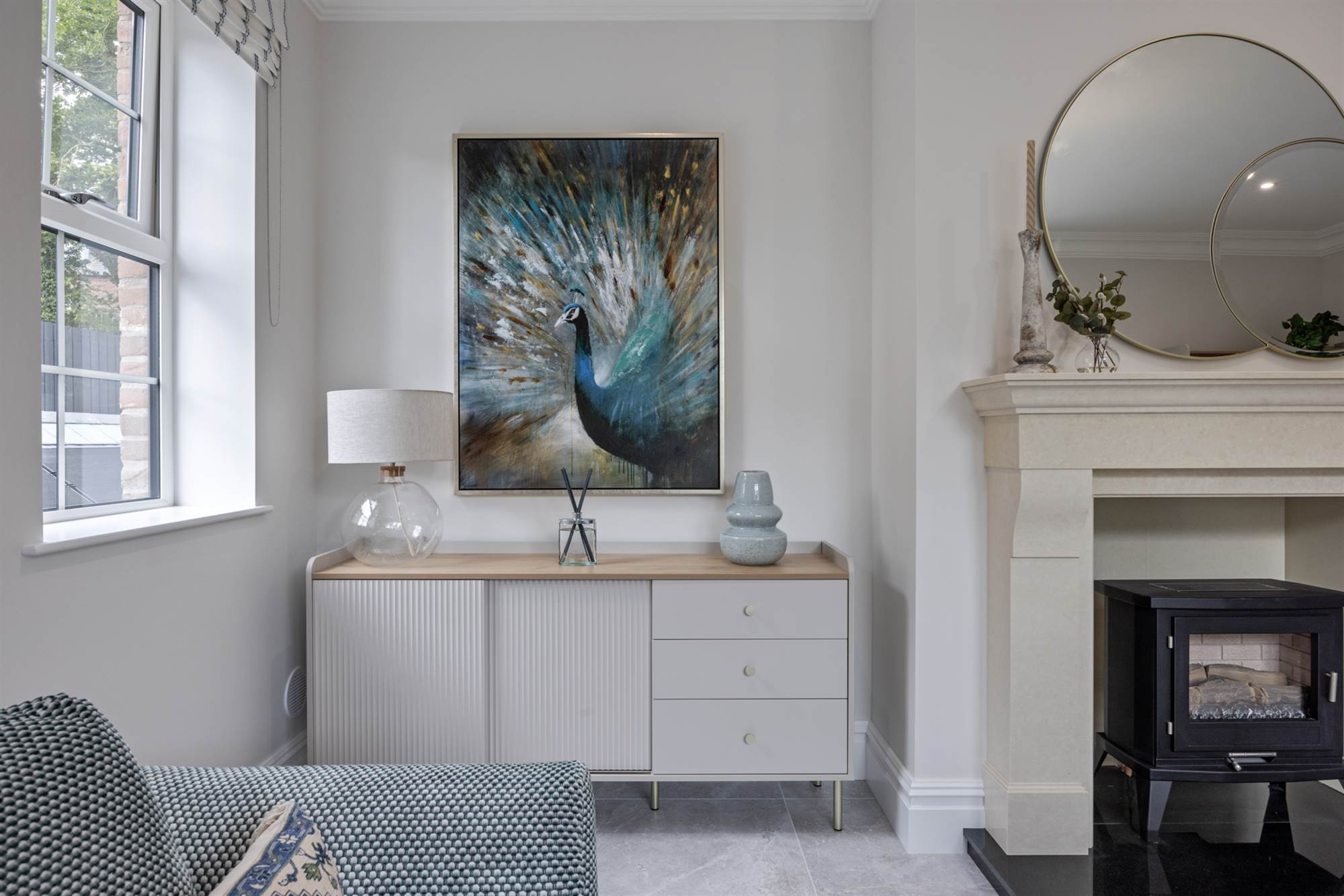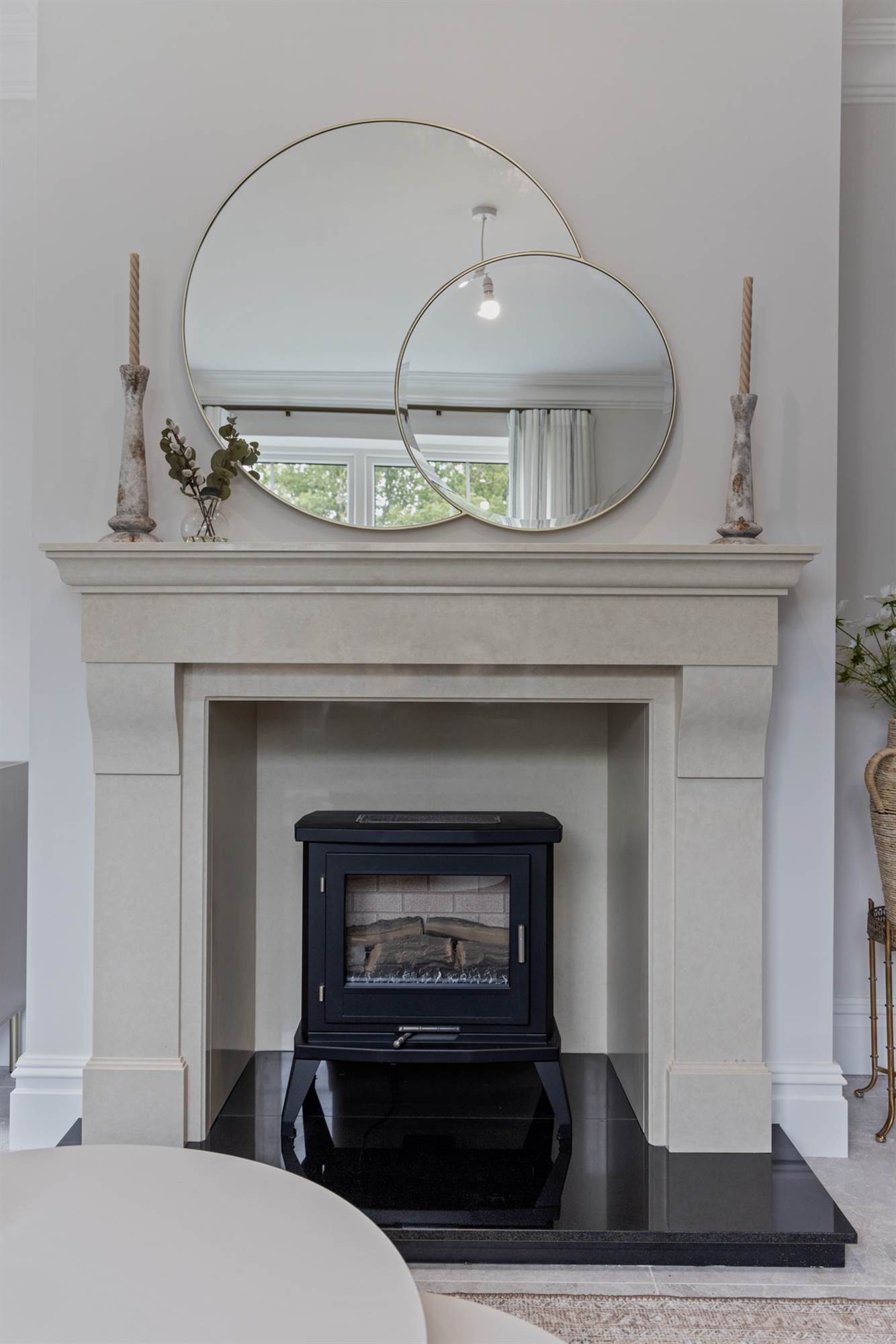 Gas stove in Lounge with granite hearth, trims and feature tiling