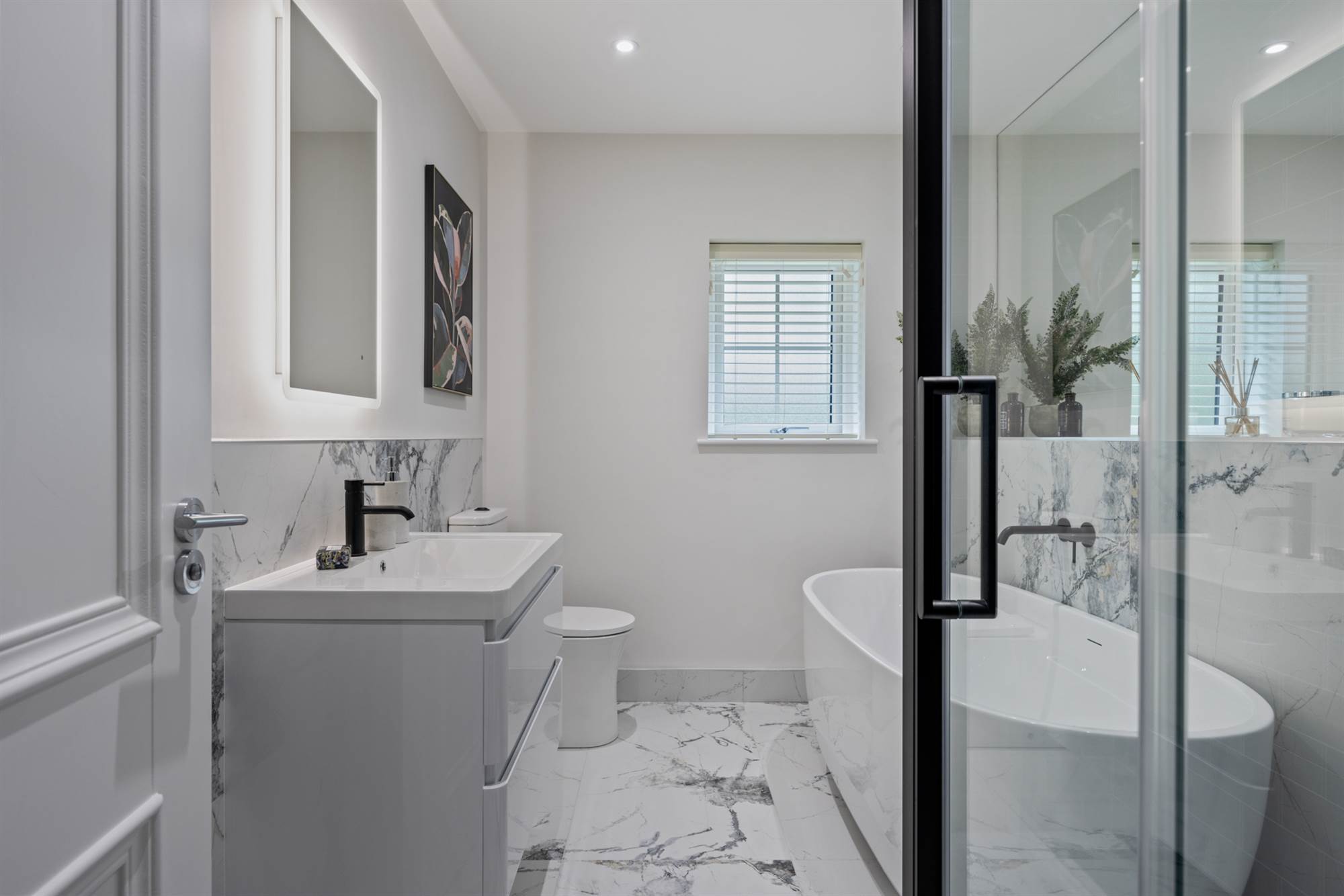 Low profile shower trays and toughened glass doors and panels throughout