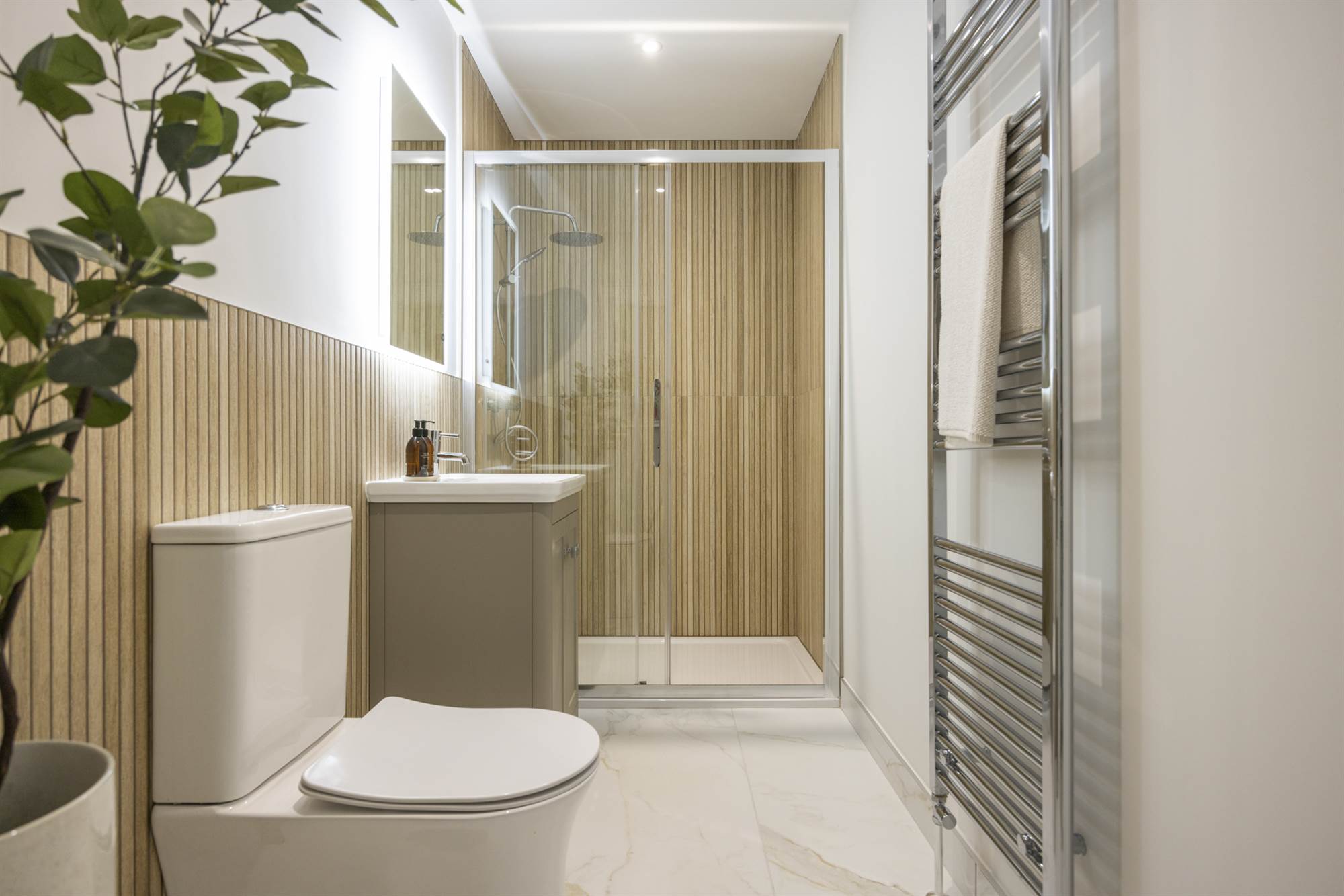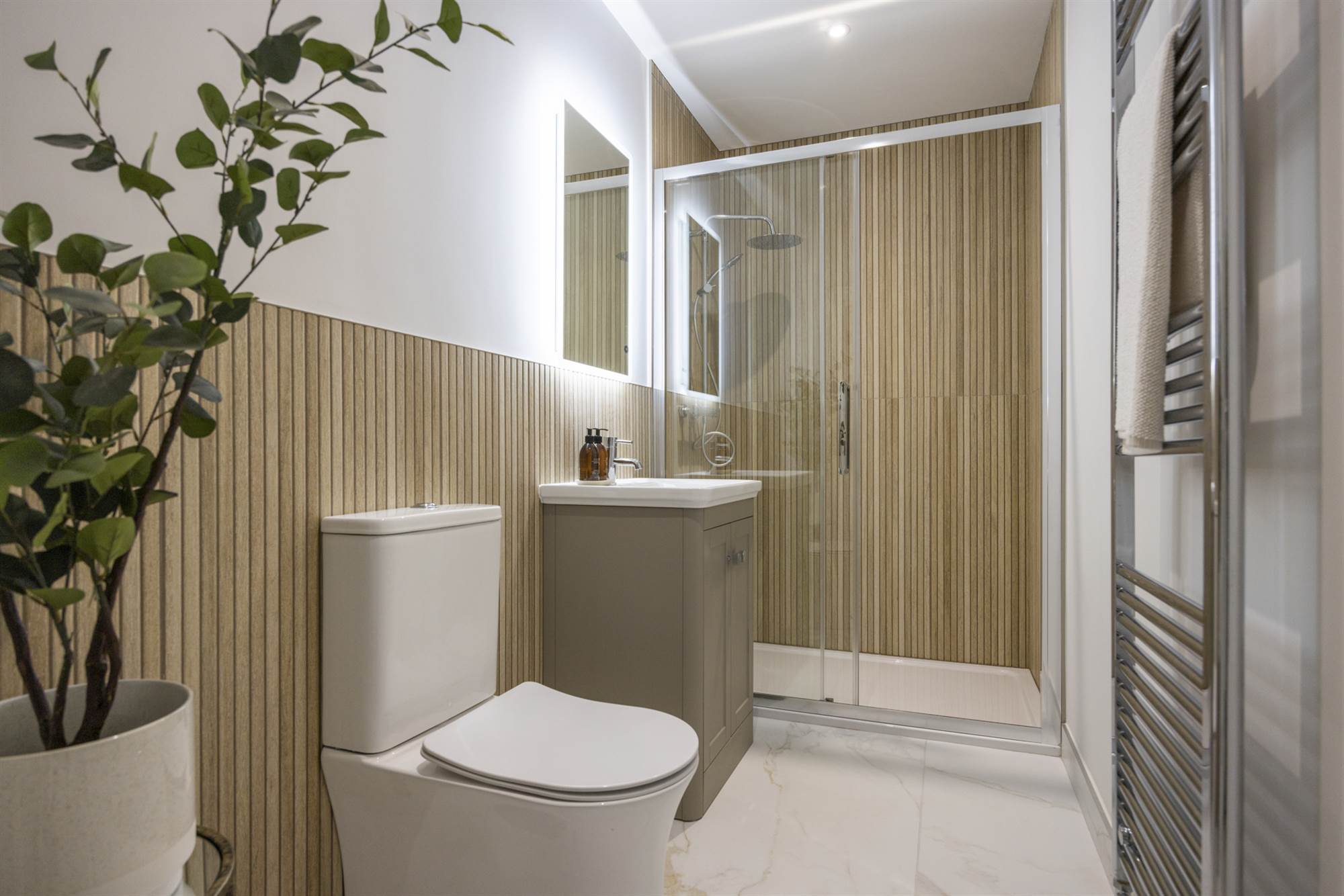 Heated chrome towel rail to Bathroom, Ensuite, W.C. and Shower Room (Where ap-plicable)