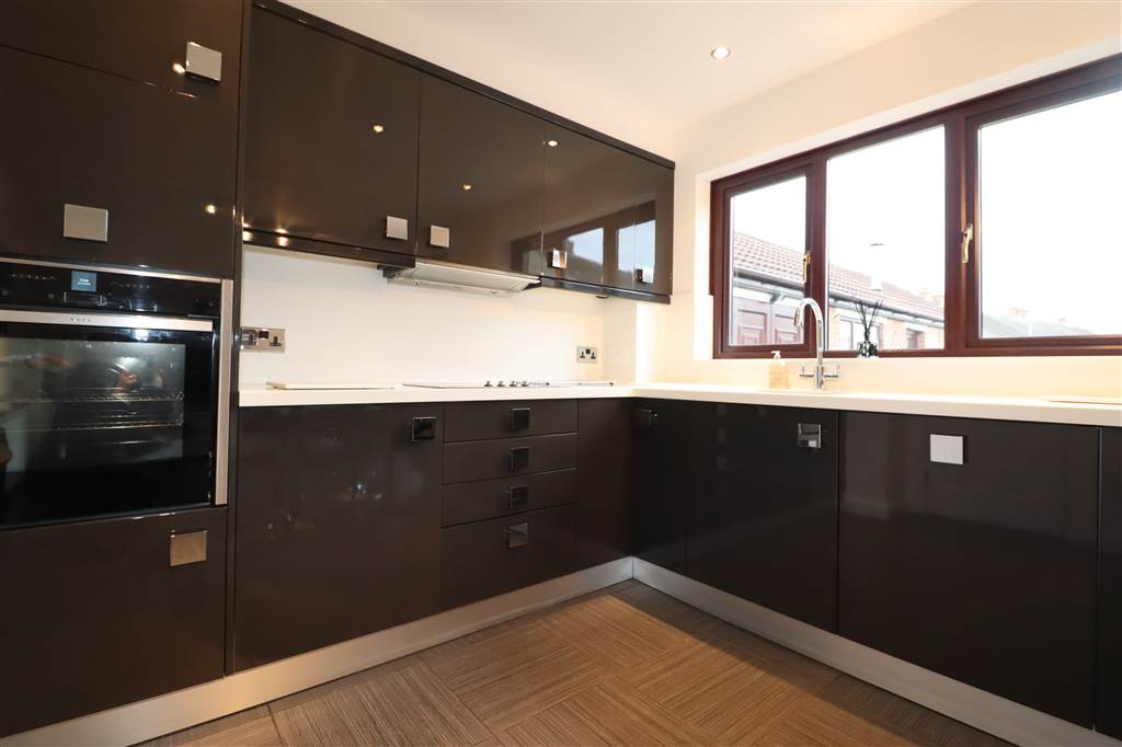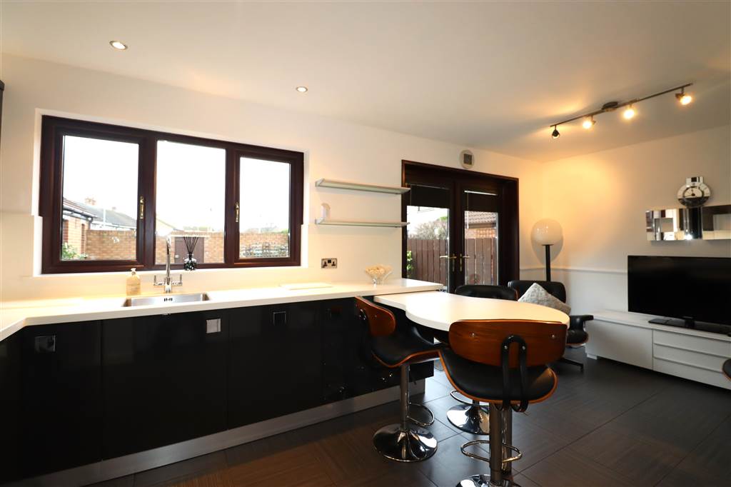 Modern Kitchen with Full Range of Appliances, Breakfast Bar Leading to Further Living Area