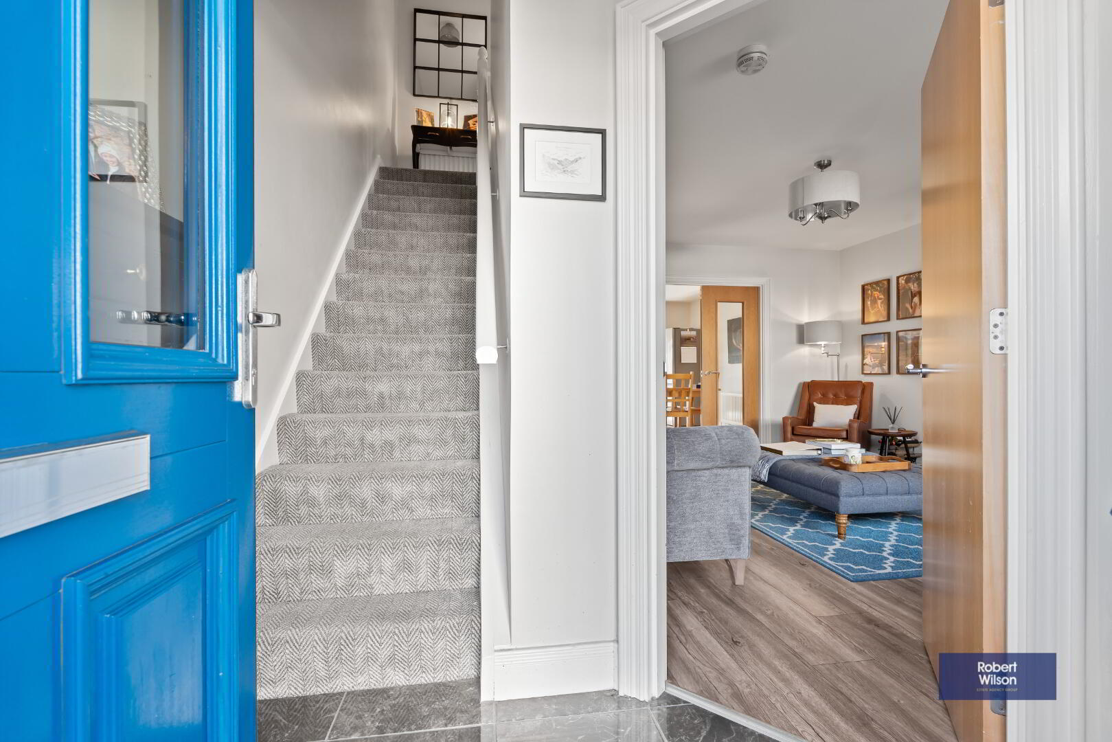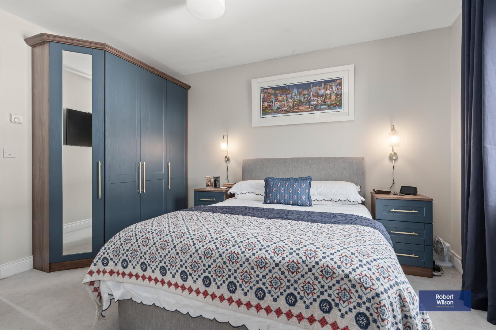Upstairs, the property offers three well-proportioned bedrooms, including a main bedroom with en-suite shower room. A modern family bathroom and additional storage options ensure practicality for busy households.
