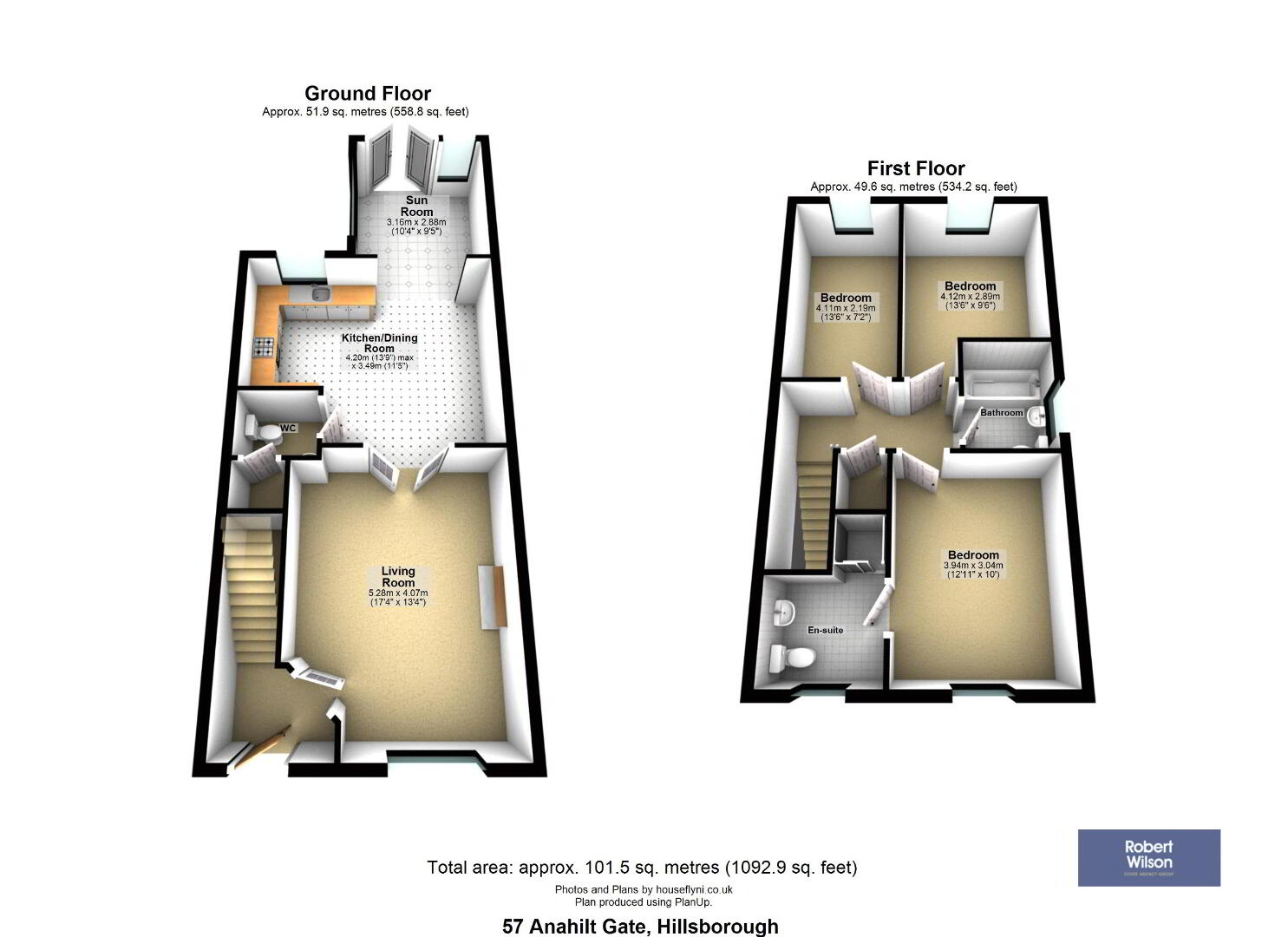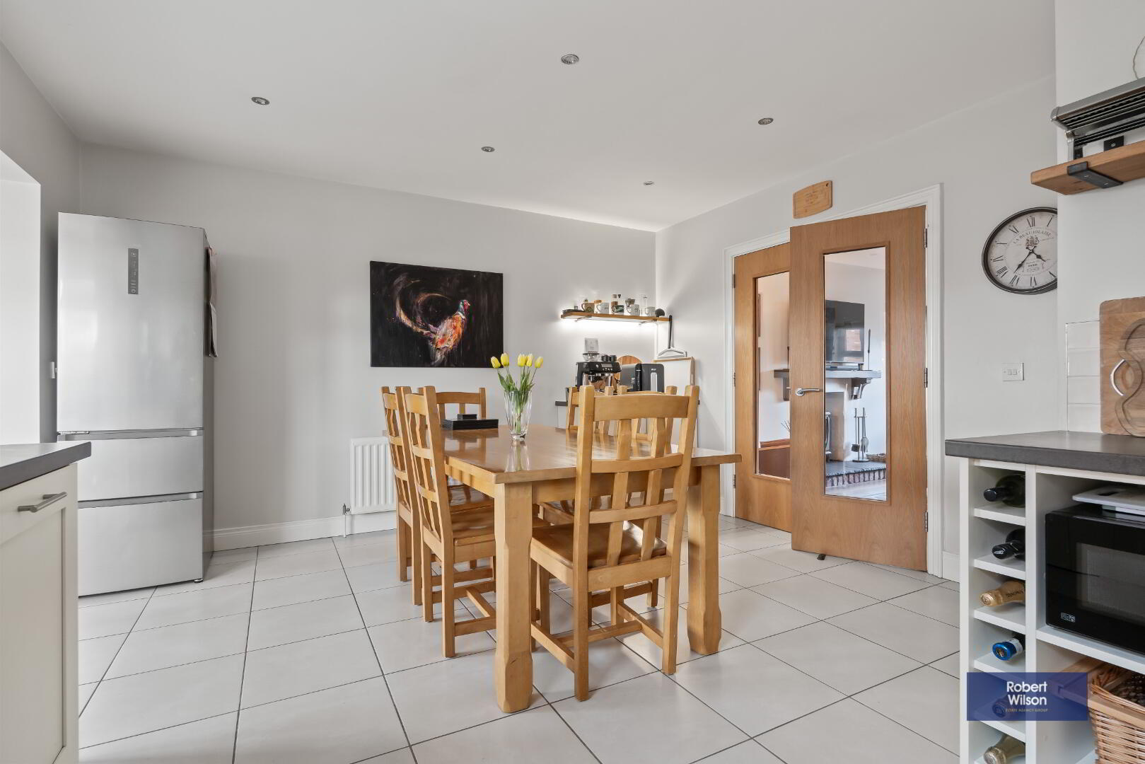 The kitchen is thoughtfully designed with a good range of units, integrated appliances, and ample workspace, flowing naturally into a delightful sunroom that overlooks and opens onto the rear garden-perfect for everyday living and entertaining alike. A convenient ground floor W.C. completes the downstairs layout.