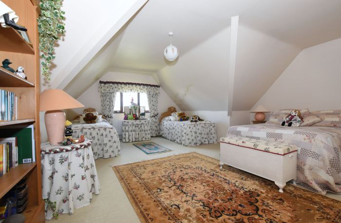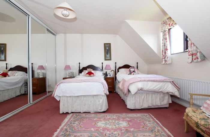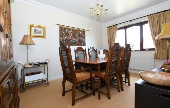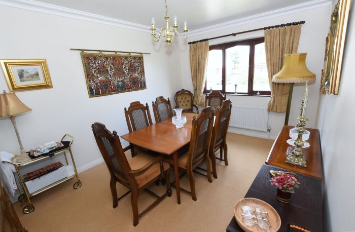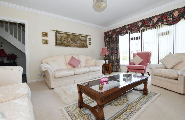 Accommodation comprises; covered entrance porch, entrance hall, sitting room, family room with feature bay window overlooking the back garden, kitchen/ dining area, utility room, downstairs contemporary shower room, bedroom 3 (downstairs), dining room/ bedroom 4, , spacious landing with seating area, 2 double bedrooms upstairs (bedroom 1 with ensuite).