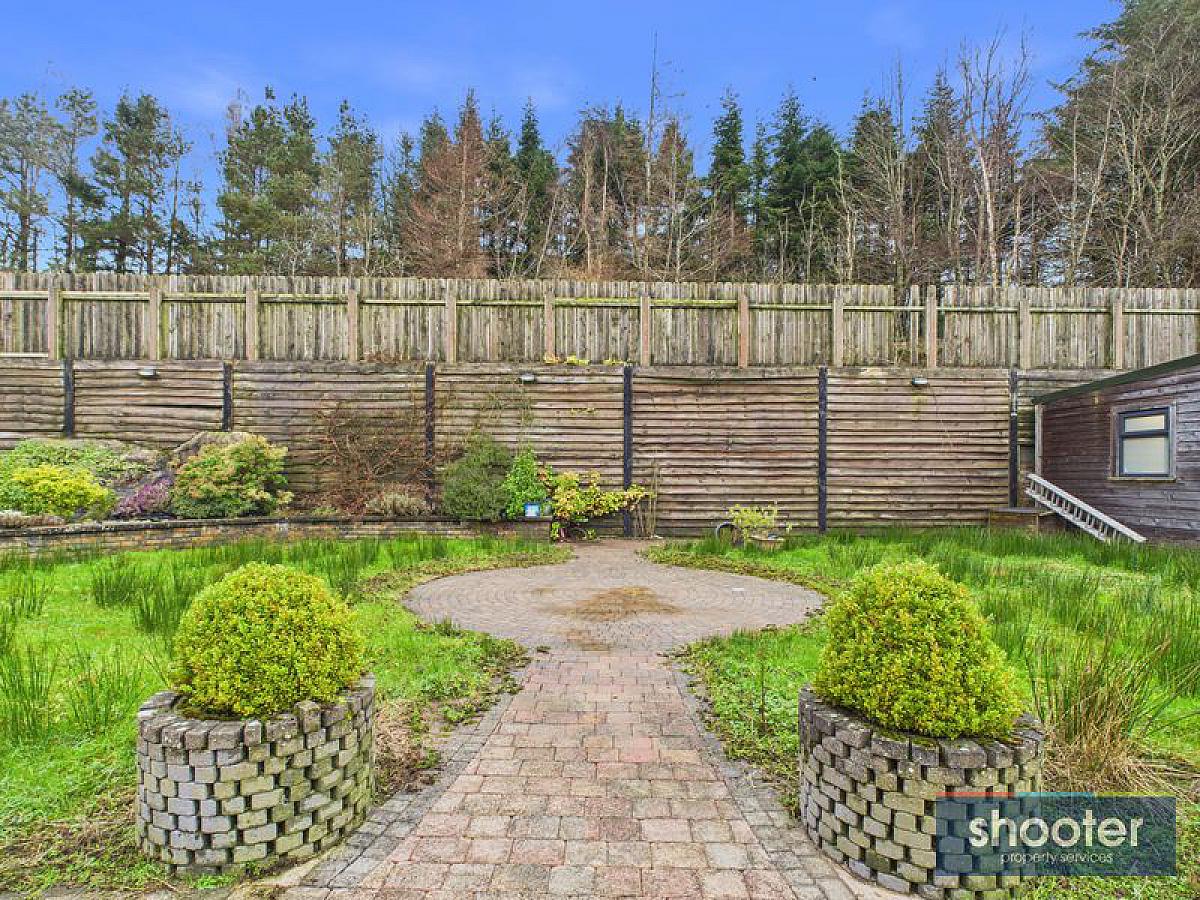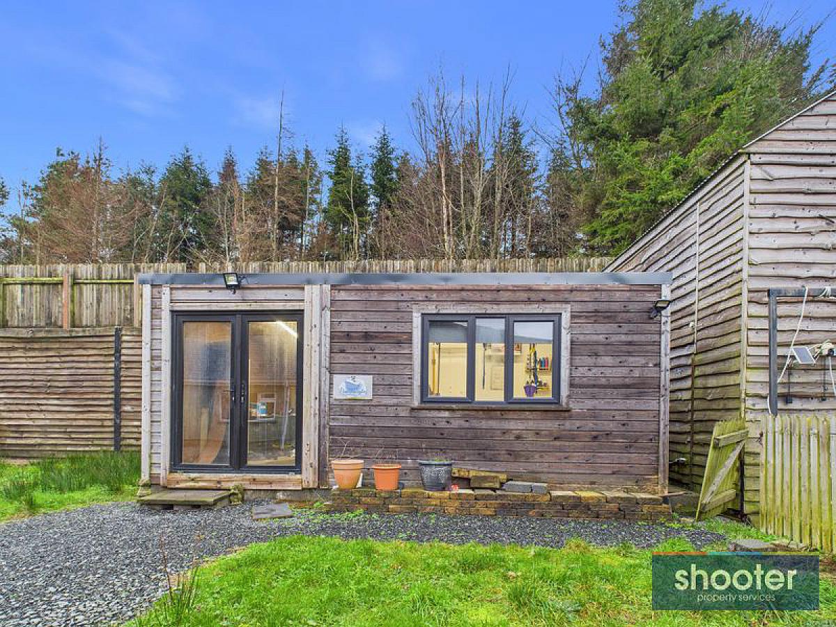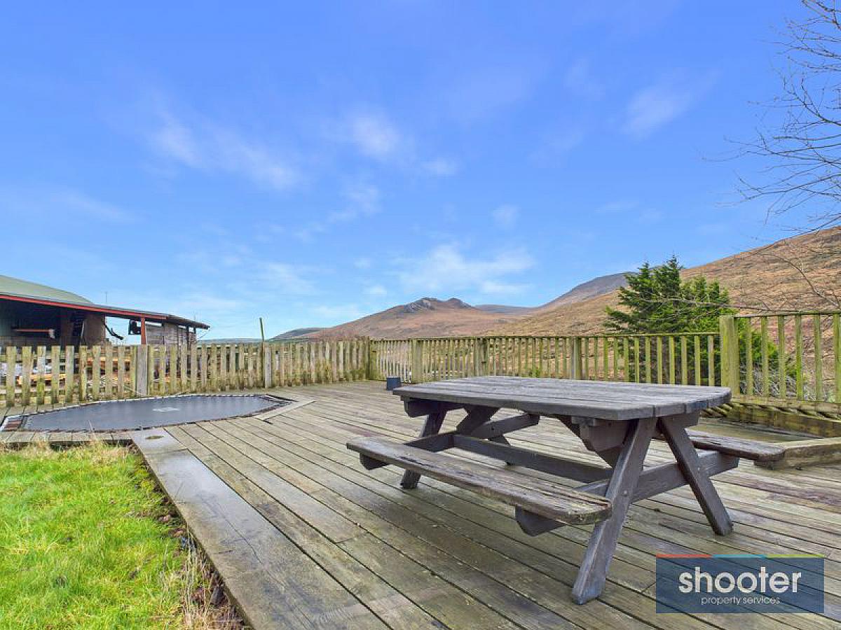 Large tarmacadam driveway. Ample parking to front, side and rear of property. Elevated large grass lawns overlooking beautiful countryside. Paved patio areas with mature flower beds. Raised decking with picnic table area and 2 40ft storage containers hidden beneath. Outbuildings plumbed and wired. Currently being used a dog grooming business. Outside water tap, lights and washing line.