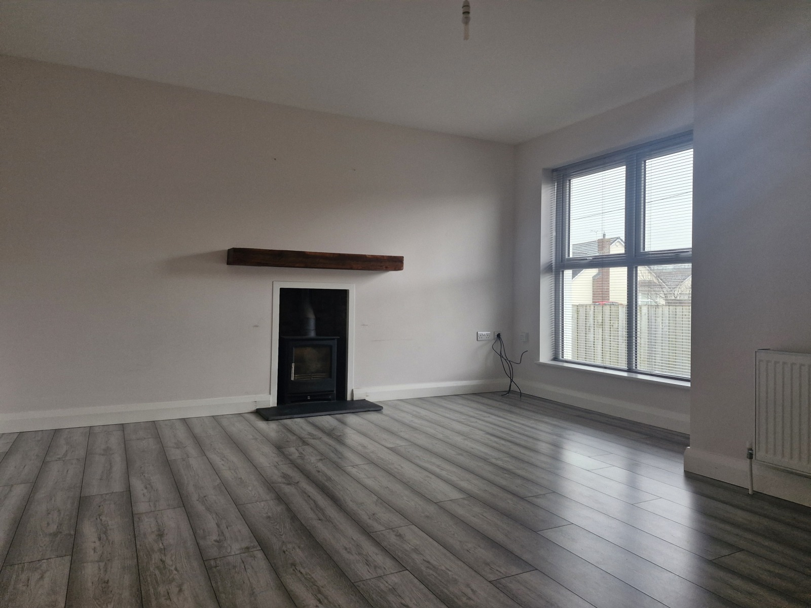 The property features a bright living room with a stove, a spacious kitchen, separate utility room, and a ground floor WC. Upstairs, the home includes three well proportioned bedrooms, with the master bedroom benefiting from an ensuite, along with a contemporary family bathroom.