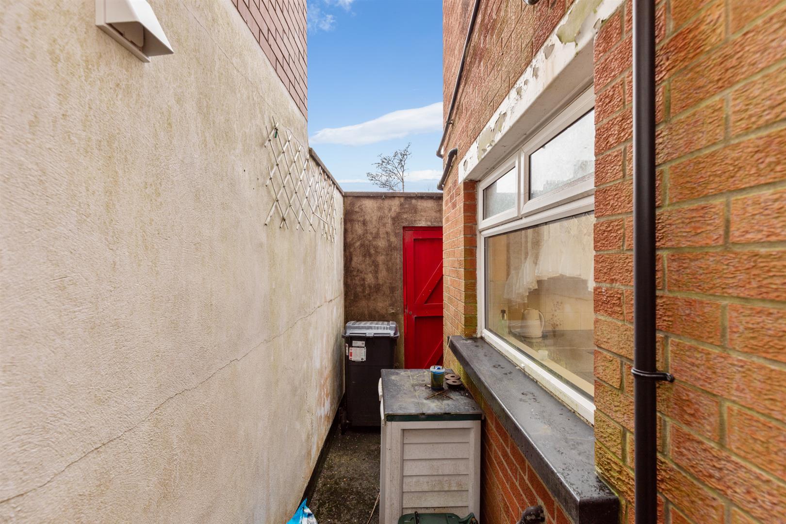 Upstairs, there are two bedrooms and a bathroom with panelled bath, low flush WC and pedestal wash hand basin. The bathroom is fully tiled and includes a storage cupboard housing the gas fired boiler. Outside, there is an enclosed rear yard providing a low-maintenance outdoor space.