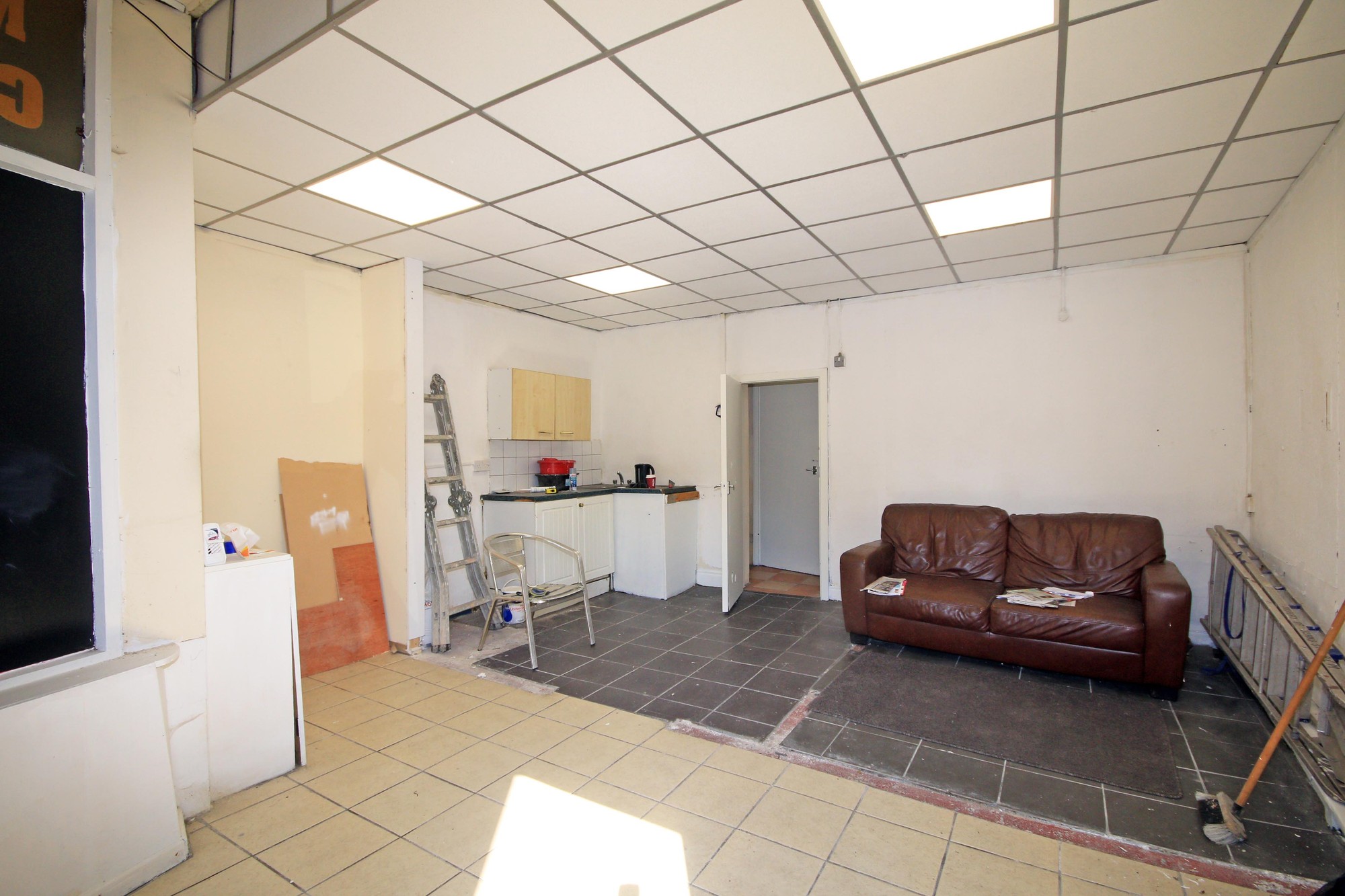 Main Space: 5.2m x 4.9m, Rear office/storage room 3.4m x 2.1m, Rear hall and separate wc.