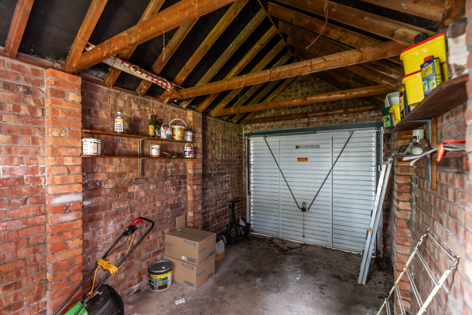 Up and over door, side services, oil fired boiler.