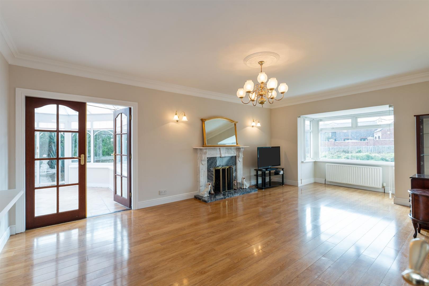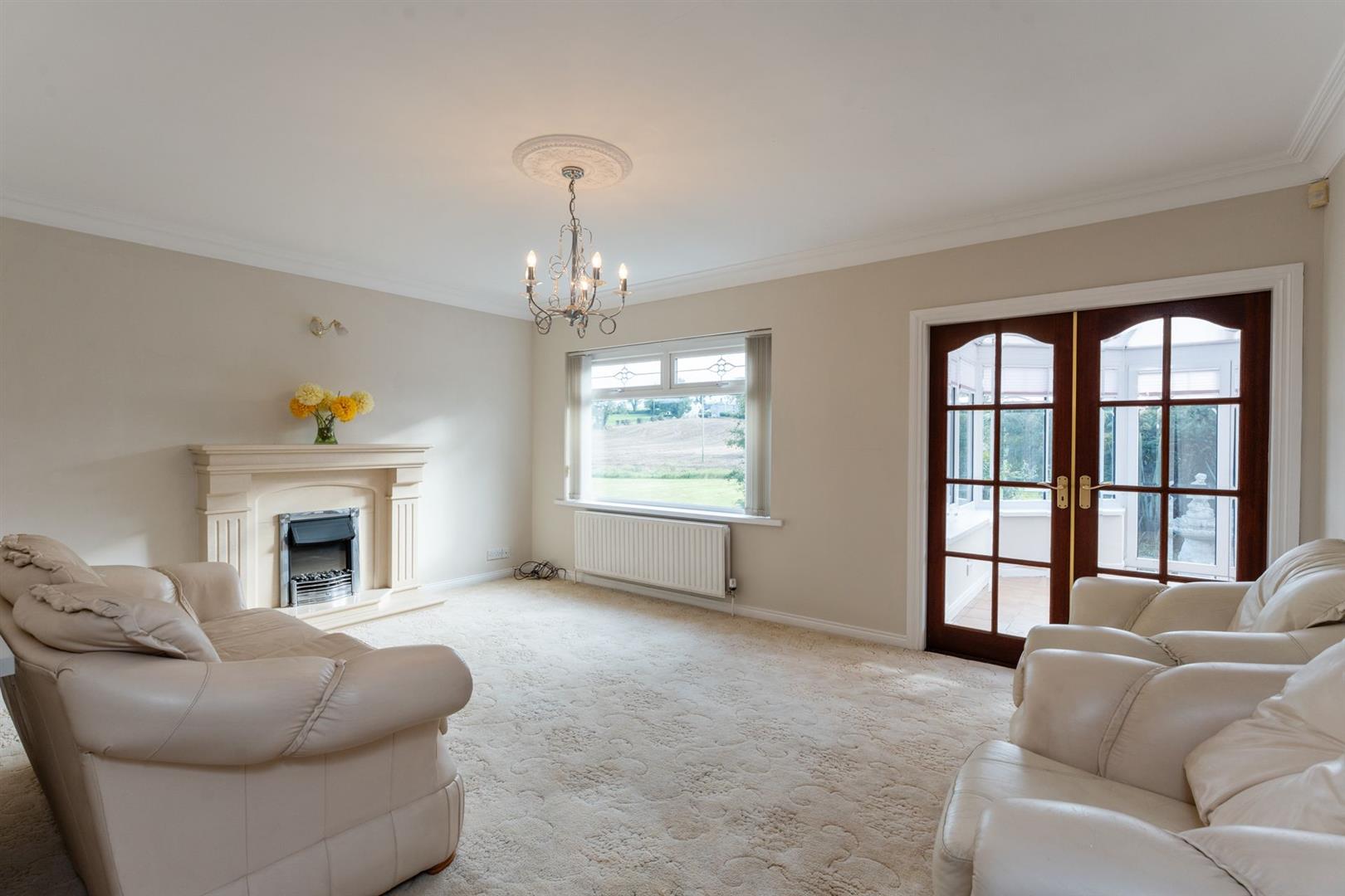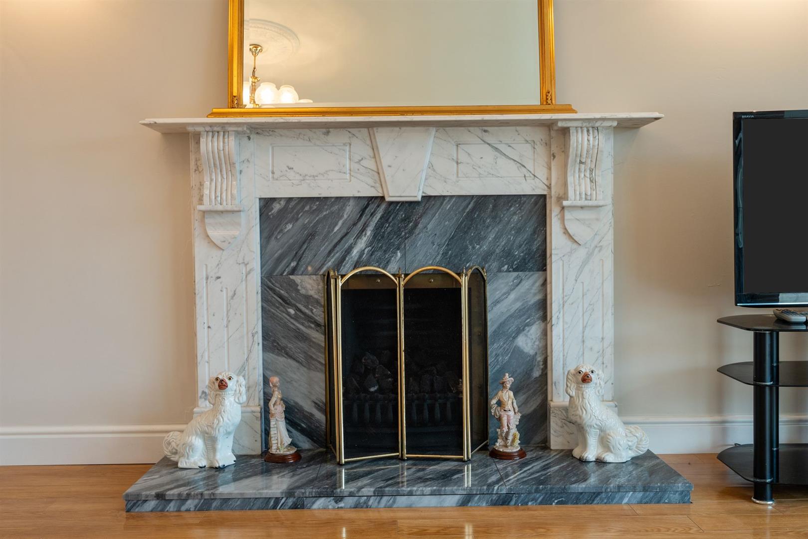 Open fireplace with marble surround and hearth. Cornice ceiling. Ceiling rose. Mature outlook to gardens and rural countryside. Glazed bevelled double doors to conservatory.