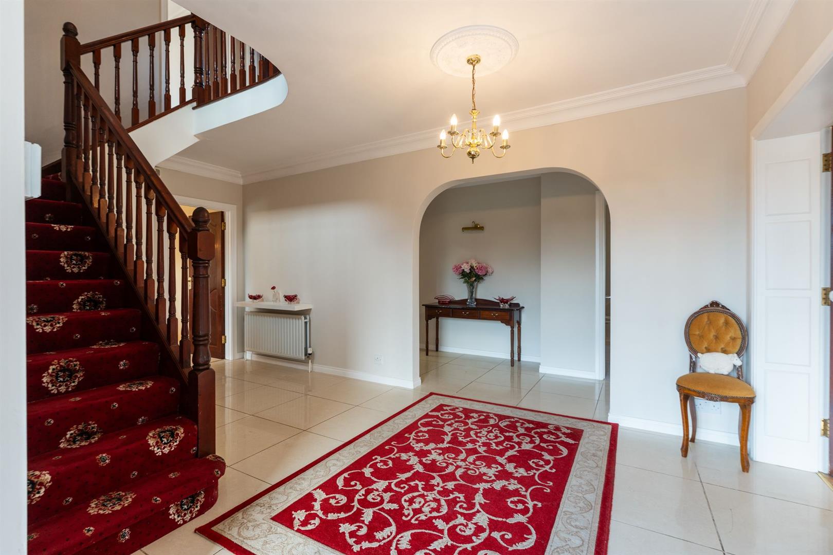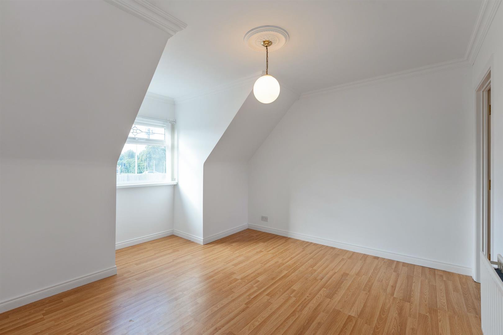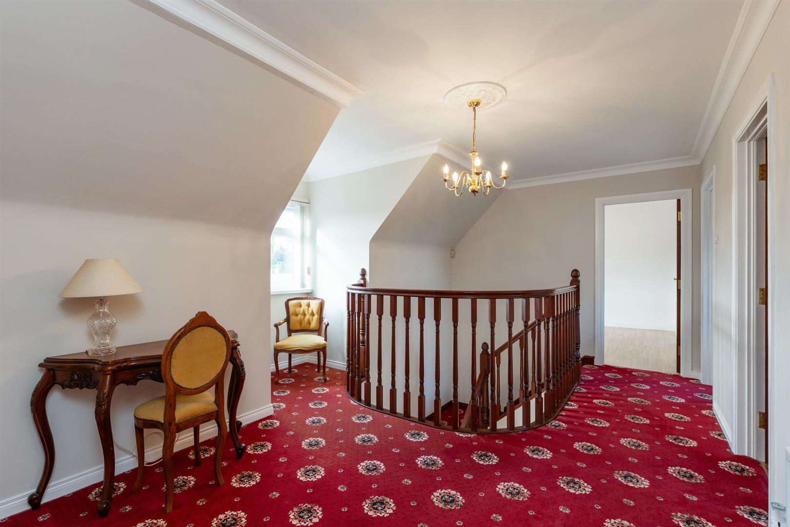 Spacious landing: Cornice ceiling. Ceiling rose. Outlook to front with distant views to Antrim. Hotpress with lagged copper cylinder and built-in shelving and storage. Open to additional built-in robe/storage. Ideal ash study/reading area.