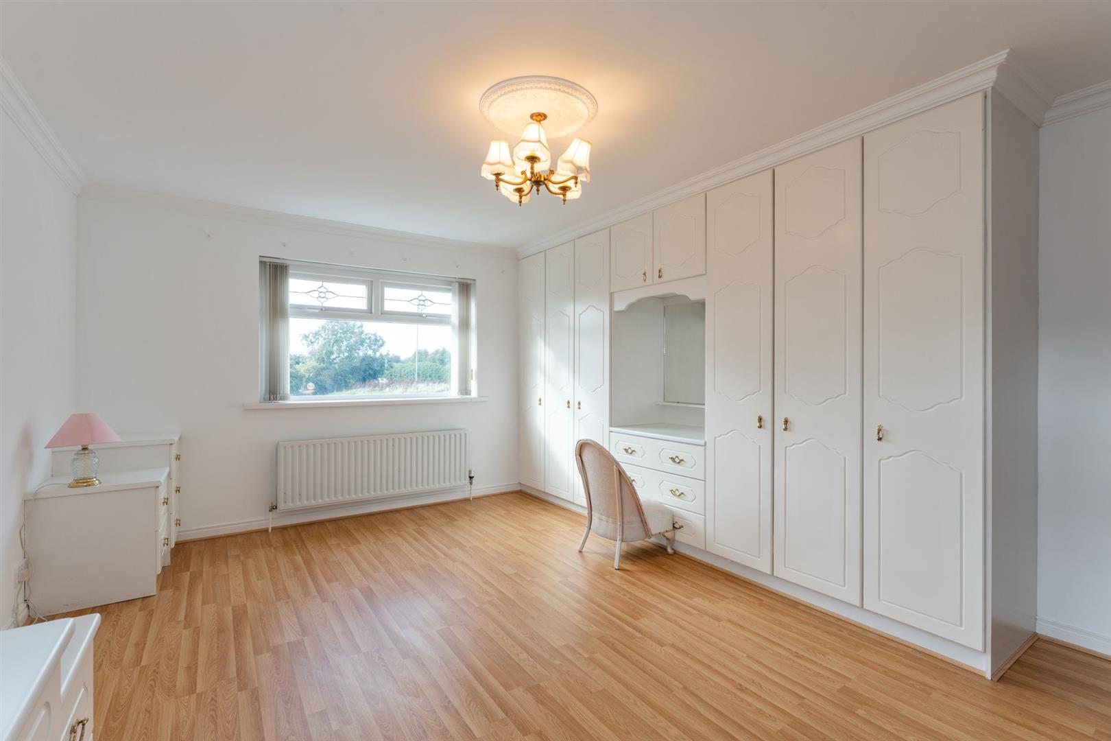 Oak laminate wooden flooring. Dual aspect windows. Mature outlook to front and distant views to Antrim Hills, also views over countryside. Extensive range of built-in robes, dresser drawer units with cupboards above.