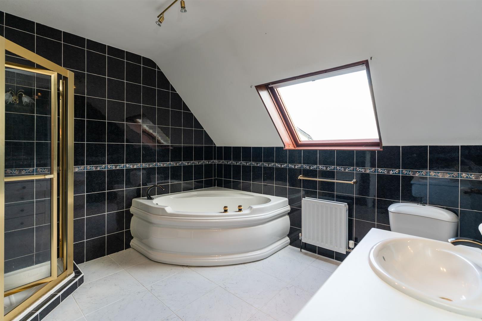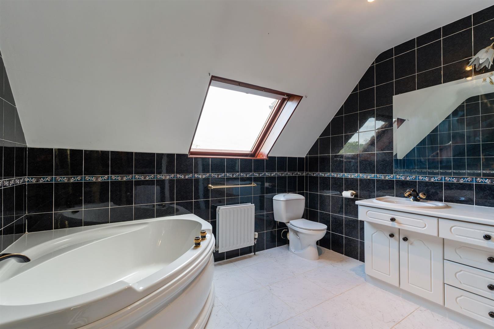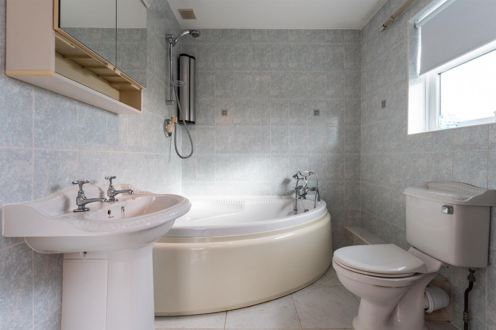 White suite comprising: W.C. Corner panelled bath. Vanity unit with twin wash hand basins, drawer units and cabinets. Built-in fully tiled shower cubicle with Mira Excel thermostatically controlled shower unit. Ceramic tiled floor. Fully tiled walls. Extractor fan. Velux window with outlook to countryside.