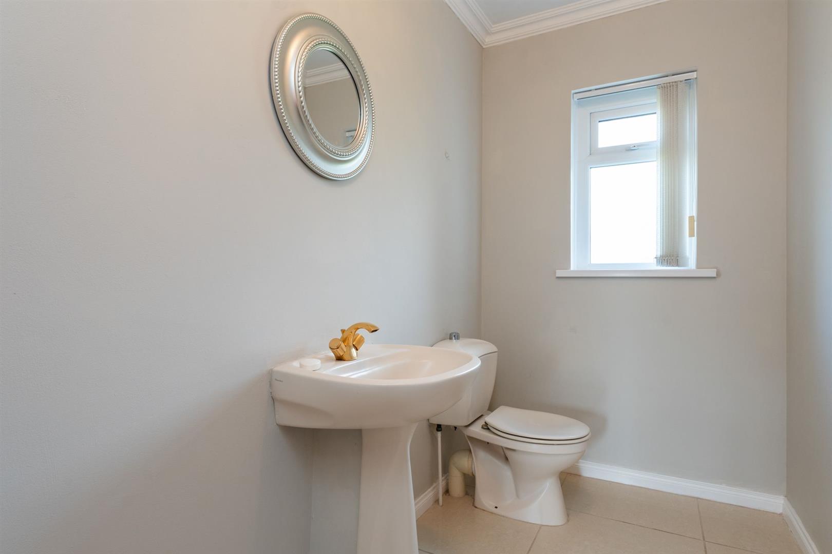 Comprising: W.C. Pedestal wash hand basin with mixer taps. Polished porcelain tiled floor. Cornice ceiling.