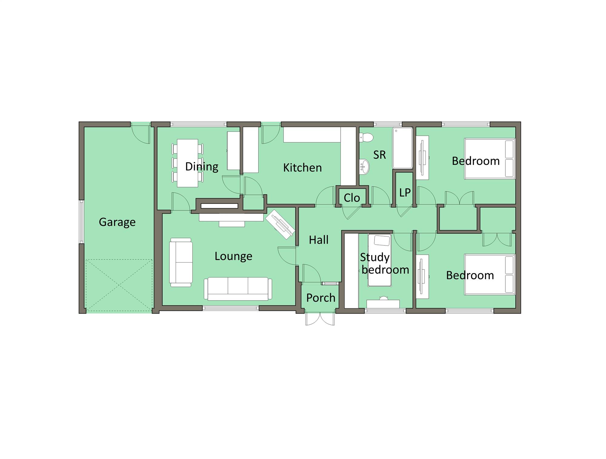 Neat front and mature easily maintained rear gardens in lawns and flowerbeds. Greenhouse.